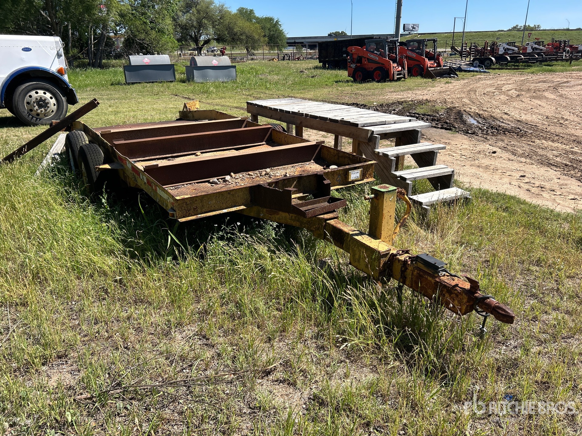 Ball Hitch, Spring Suspension, Electric Brakes, 17 ft Main Deck, 74 in Usable Deck Width, 96 in Overall Deck Width, Steel Decking, 7.50R16 Tires, Equipment-from-Mathis-Rentals