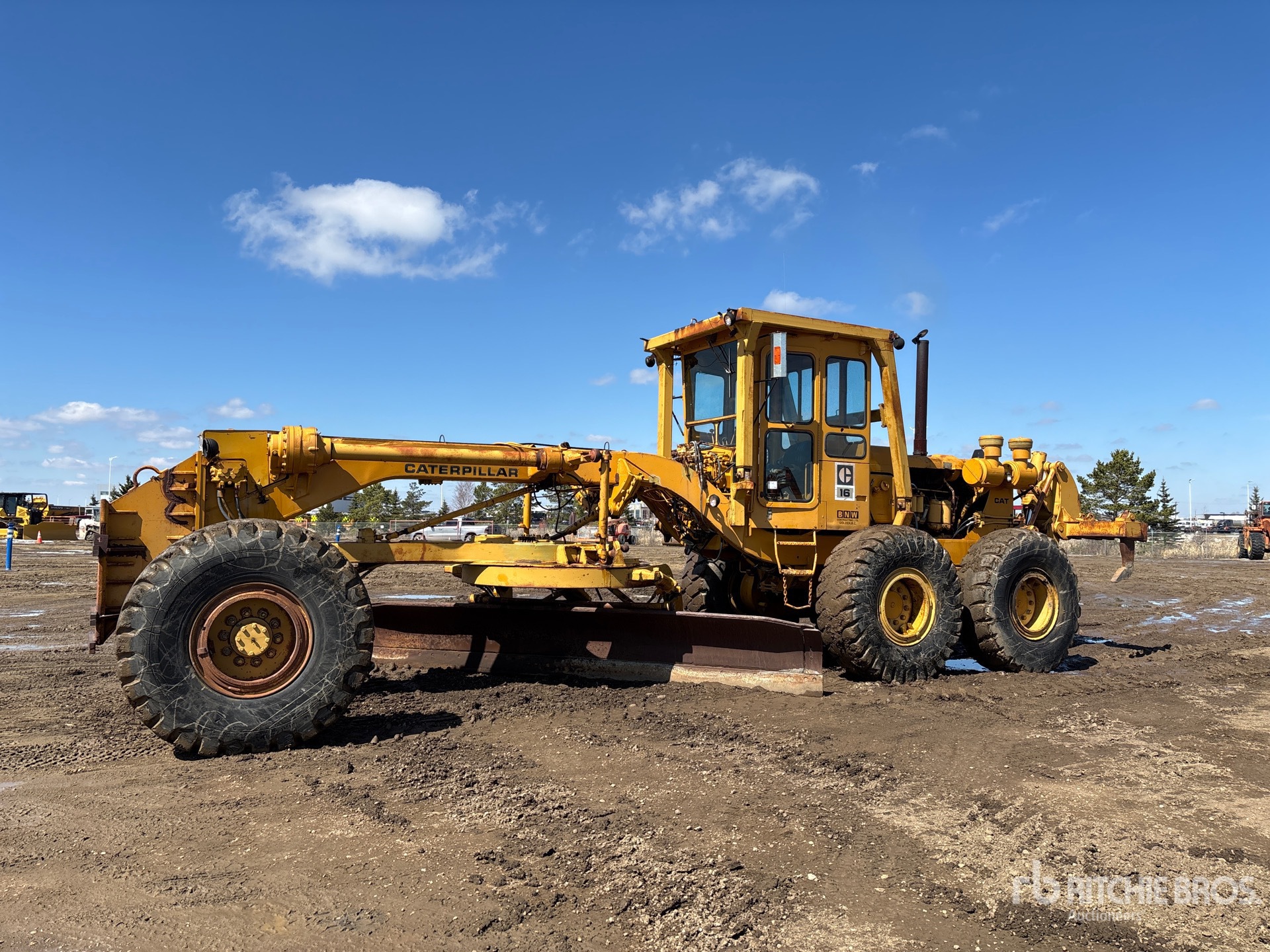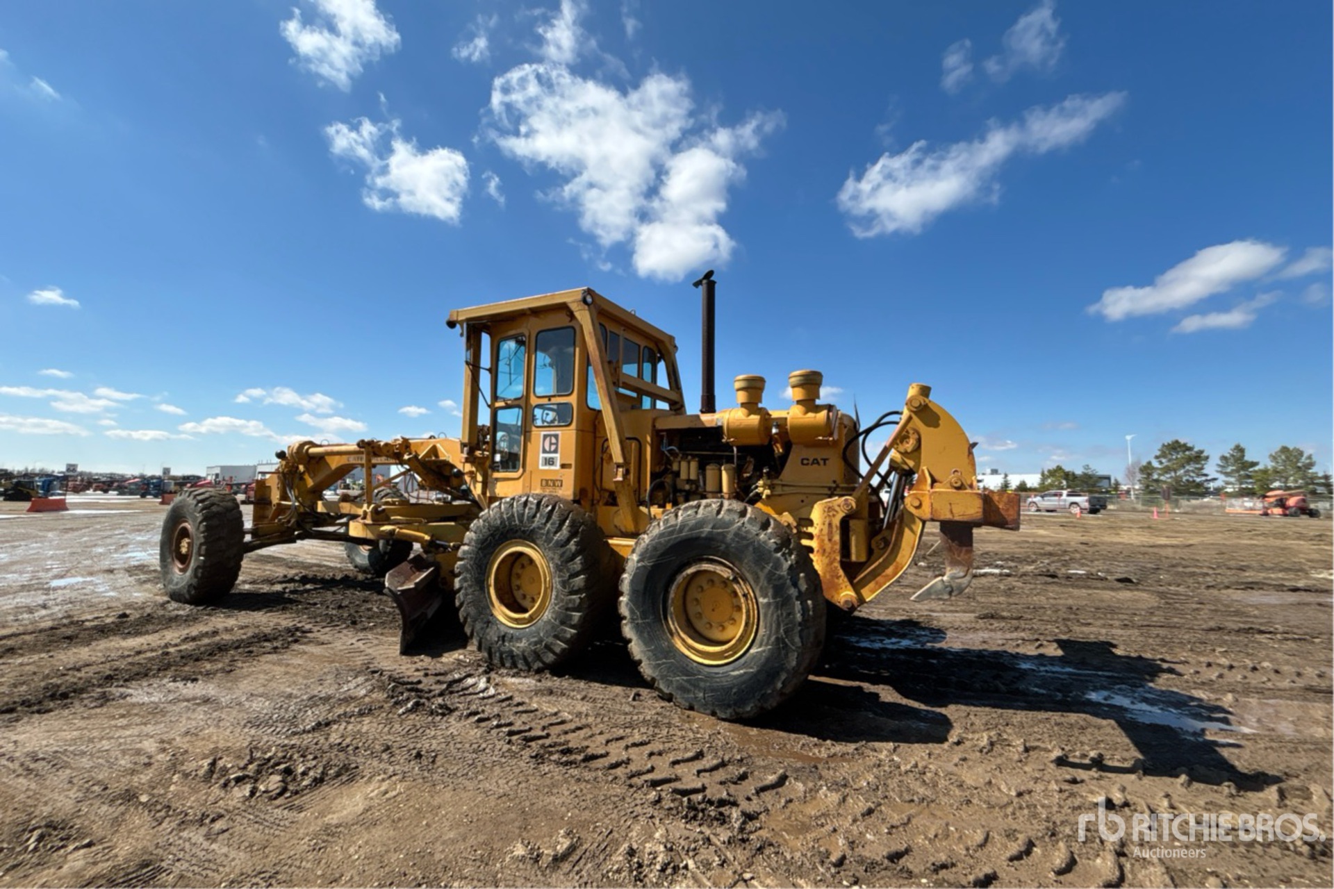 Enclosed Cab, 16 ft / 4.88 m Moldboard, Push Block, Rear Scarifier, 18R25 Tires