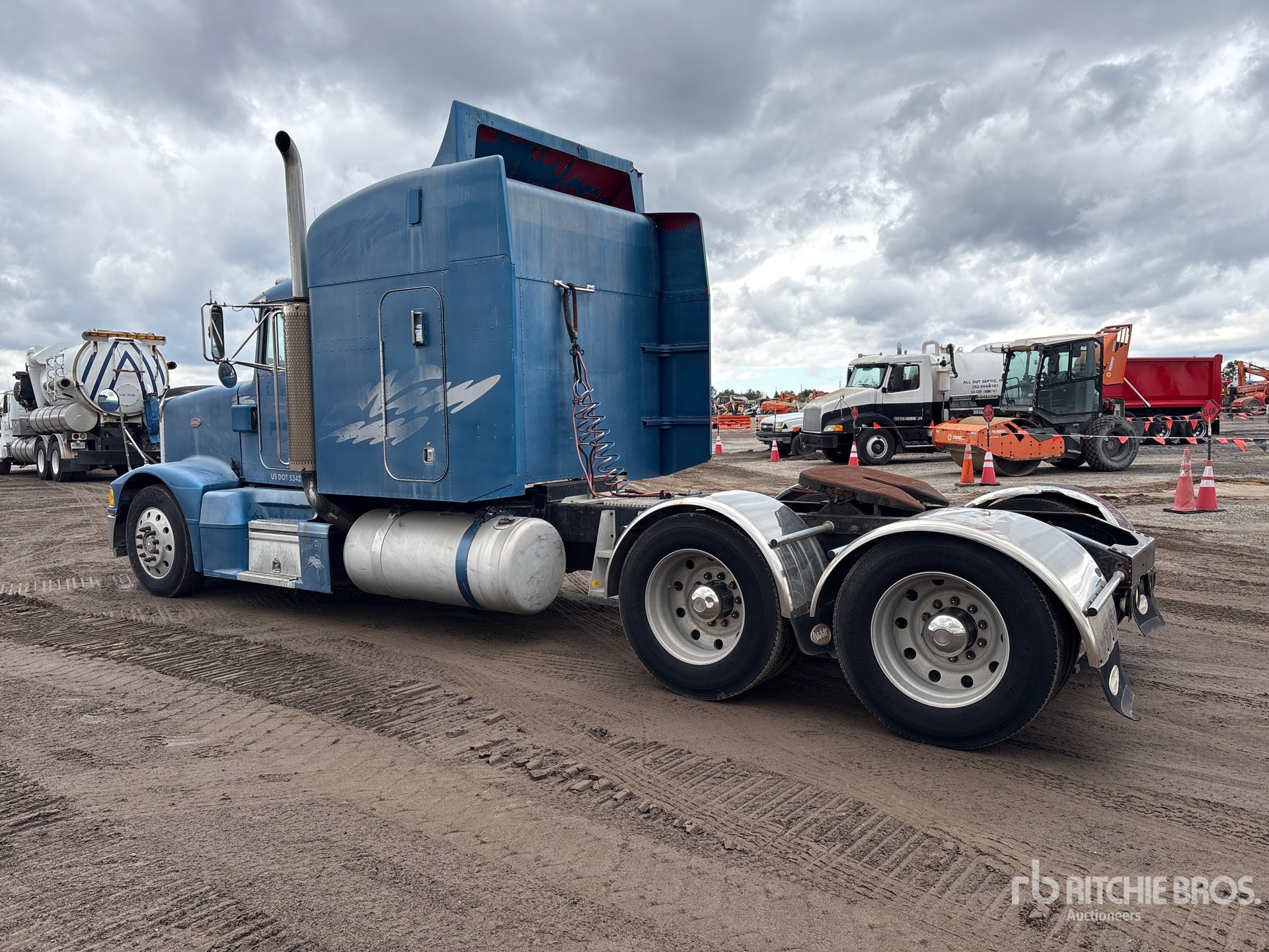Cat 3406B Engine, Eaton Fuller 10-Speed Manual Transmission, 12000 lb Front Axle, 34000 lb Rears, 46000 lb GVWR, Engine Brake, Differential Lock, 63 in Mid Roof Sleeper Cab, 250 in Wheelbase, Air Suspension, Aluminum Wheels, 285/75R24.5, Dual Fuel Tanks