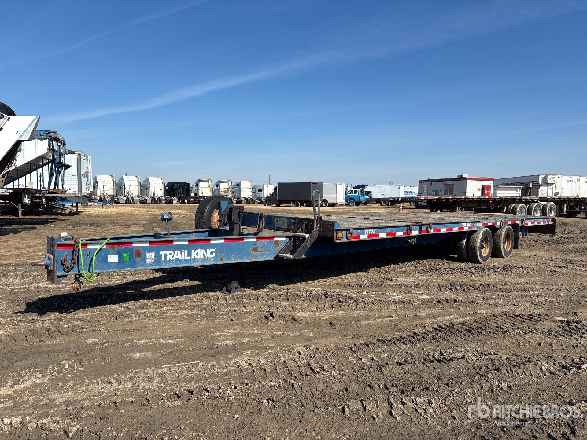 Lunette Ring Hitch, Spring Suspension, 100 in Deck Width, Wood Flooring, 9.50R16.5 Tires, 24ft Rear Tilt Deck