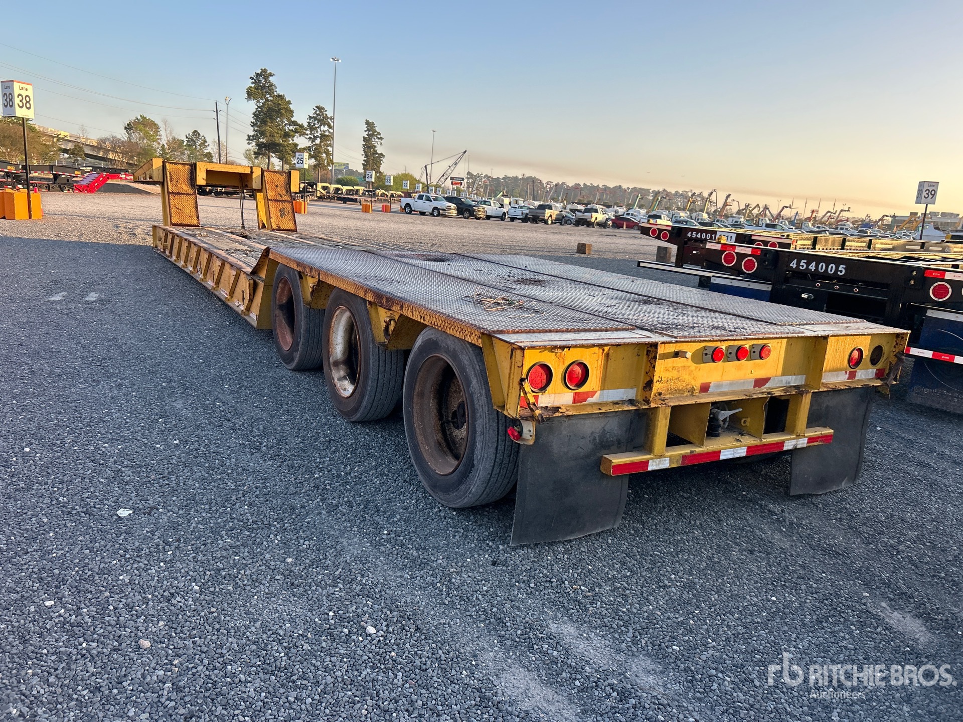 Les mesures sont fournies à titre d'estimation uniquement. Les dimensions réelles sous charge peuvent varier en fonction de la hauteur du camion/de la remorque et de la configuration/position de la machine chargée. Il incombe à l'acheteur de mesurer toutes les charges avant de quitter notre site de vente pour s'assurer que la charge peut être transportée en toute sécurité. Toutes les mesures doivent être vérifiées par l'acheteur. Ne vous fiez pas à ces mesures pour le transport.