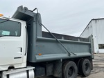 Cat 6 Cylinder Diesel Engine, 18045 Engine hrs, Eaton Fuller 8LL Manual Transmission, Differential Lock, 18000 lb Front Axle, 46000 lb Rears, 29030 kg GVWR, 315/80R22.5 Front Tires, 11R22.5 Rear Tires, Dual Steering Boxes, Air Ride Suspension, 184 in Wheelbase, PTO, 15 ft Long x 4 ft High Steel Body, Electric Roll Tarp, Tailgate Chute