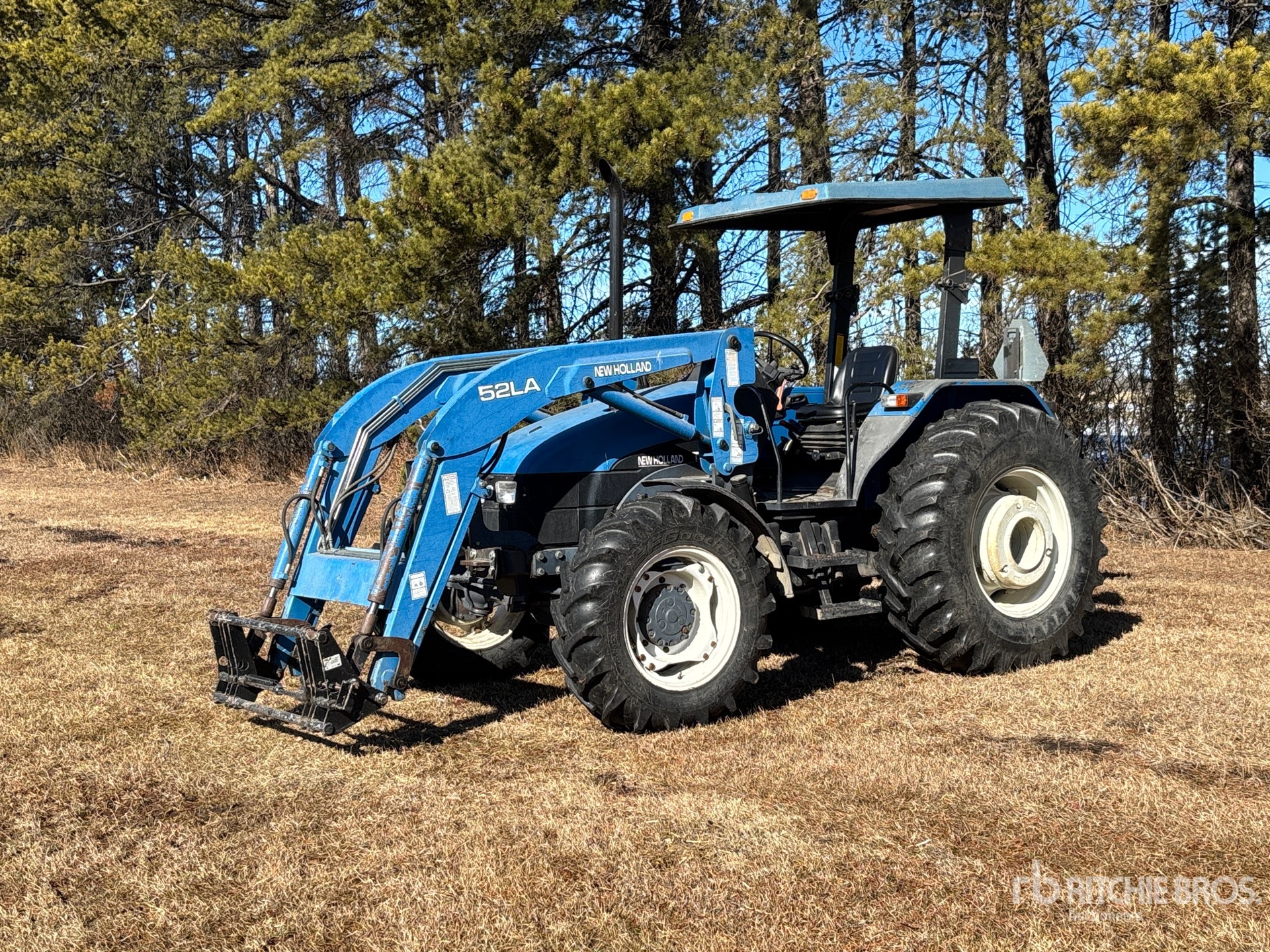 Canopy, 12 Forward 4 Reverse, 80 hp Engine, New Holland 52LA Loader w/Joystick, 2 Rear Remotes, 540/1000 PTO, 3-Point Hitch, 12.4-24 Front Tires, 18.4-30 Rear Tires, Rear Wheel Weights