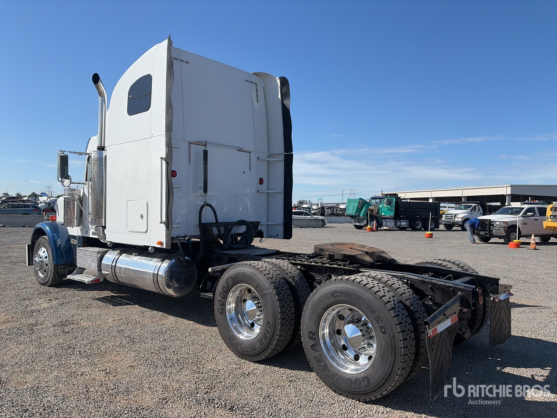 Located in Lane 26 Spot 16, Cat C15 435 hp Engine, 9633 Engine hrs, Eaton Fuller RTLOC-16909A-T2 8 -Speed Manual Transmission, 52000 lb GVWR, 60 in High Rise Sleeper Cab, 260 in Wheelbase, Air Suspension, Aluminum Outer Wheels, 11R22.5, Air Sliding 5th Wheel, Dual Fuel Tanks