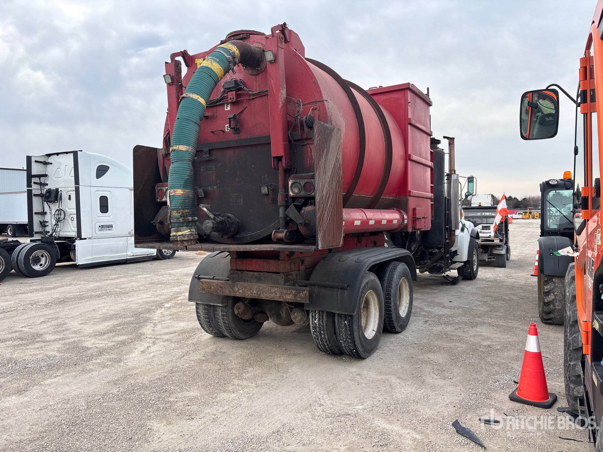 Cat Diesel Engine, 11353.5 Engine hrs, Eaton Fuller 9LL Manual Transmission, Aluminum Outer Wheels, 425/65R22.5 Front Tires, 11R22.5 Rear Tires, Dual Steering Boxes, Air Ride Suspension, 263 in Wheelbase, PTO, Steel Debris Tank, Hydraulic Lift Tailgate, Hydraulic Tailgate Locks, 6 ft Boom, 10 in Suction Hose, Vac-Con PTO Driven Pump, Vac-Con 4716SMD Blower