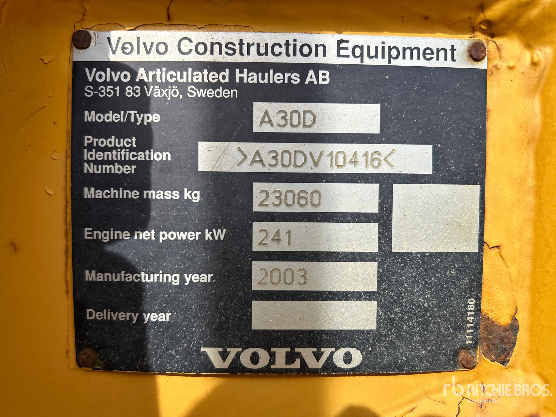 Les informations détaillées de l'équipement ont une portée limitée. Ritchie Bros. Auctioneers n'a inspecté aucun aspect ou composant de l'équipement autre que ceux expressément énoncés dans le présent document. Sauf indication expresse, nous ne faisons aucune déclaration ou garantie, expresse ou implicite, concernant l'équipement et/ou ses composants, y compris, sans s'y limiter, toute déclaration ou garantie concernant le fonctionnement, la conformité à toute norme ou exigence de sécurité de toute autorité ou tout organisme de réglementation applicable, l'adéquation à un usage particulier ou la qualité marchande. Nous vous conseillons fortement d'effectuer vous-même une inspection détaillée de l'équipement avant d'enchérir.