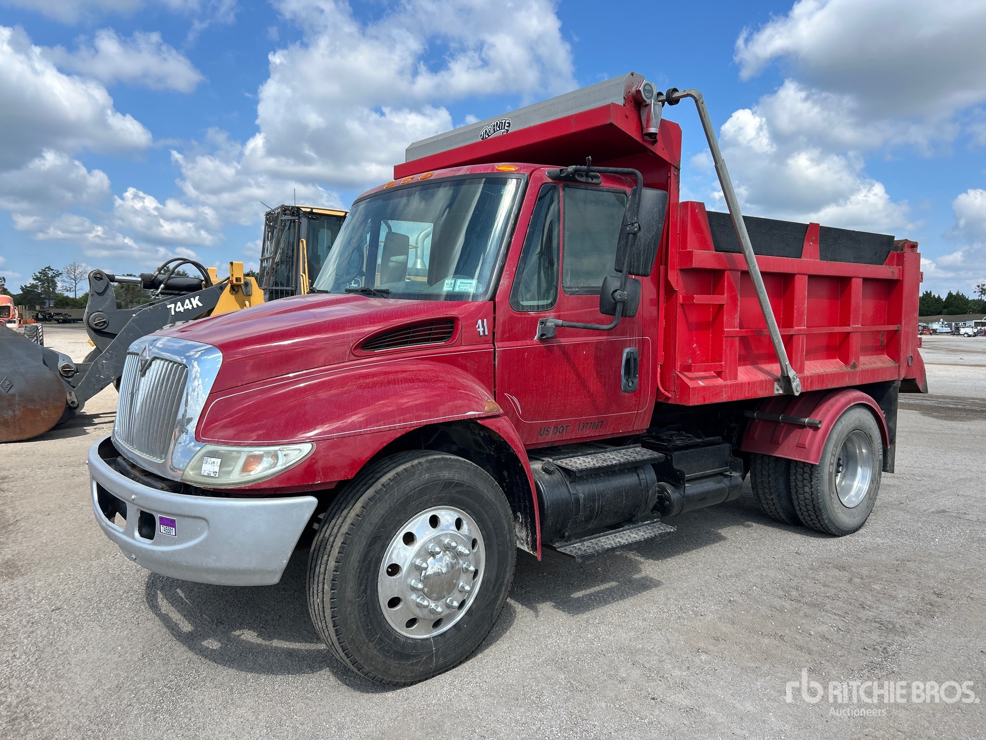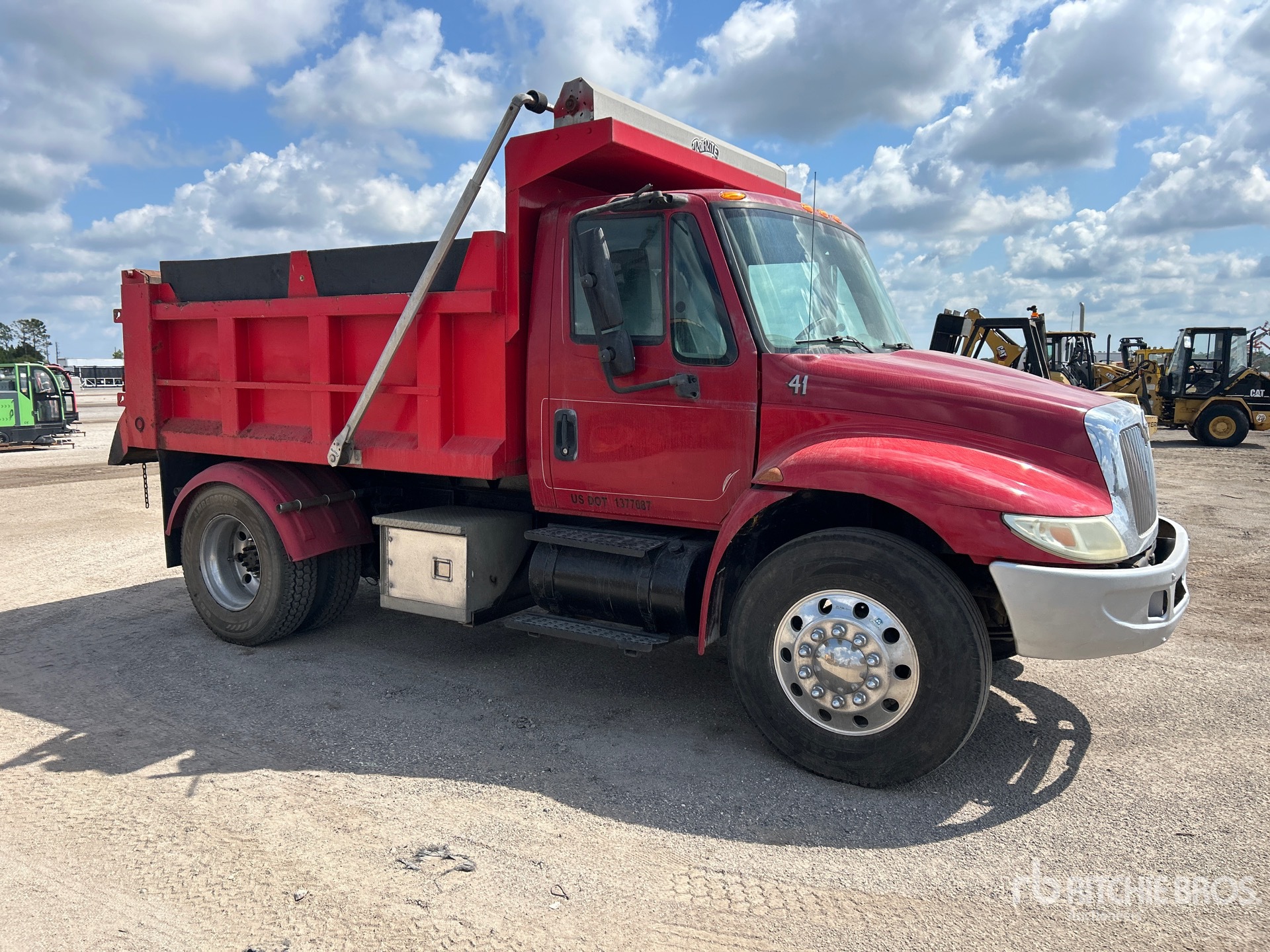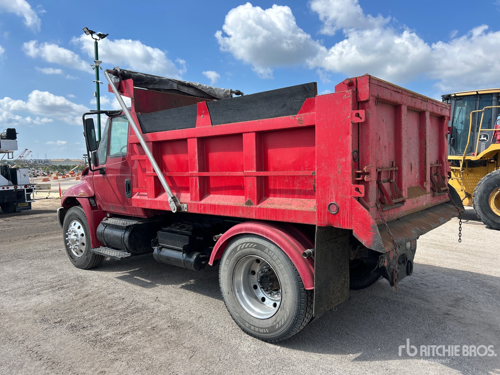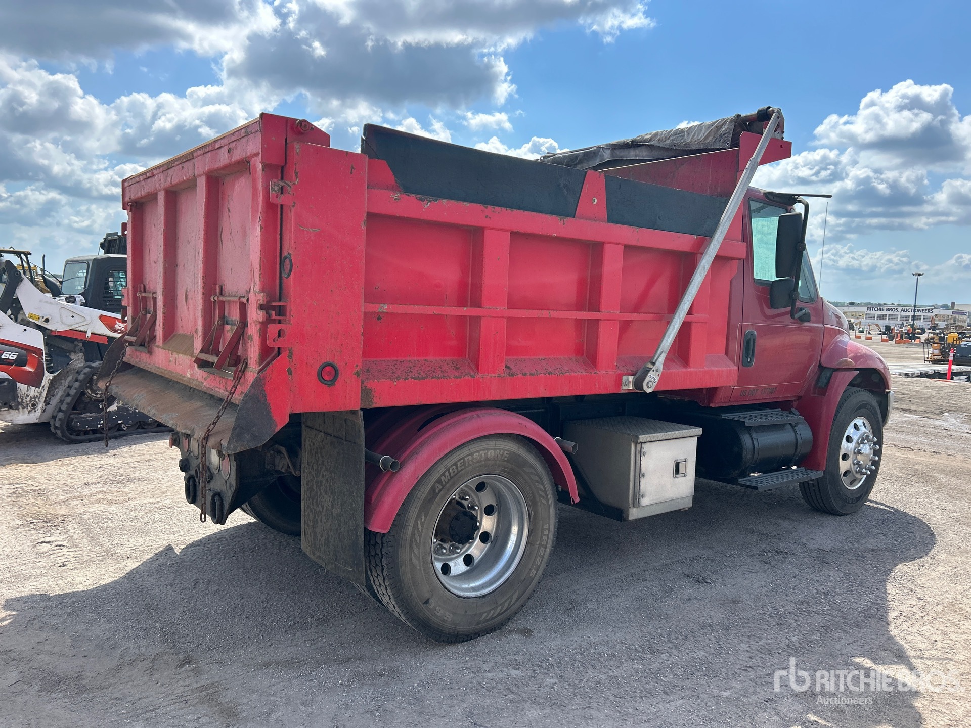 6 Cylinder Diesel Engine, Eaton Fuller 10-Speed Manual Transmission, 12000 lb Front Axle, 21000 lb Rears, 33000 lb GVWR, 11R22.5, Spring Suspension, 150 in Wheelbase, PTO, 10 ft Long x 3 ft High Steel Body, Electric Roll Tarp, Double Tailgate Chutes