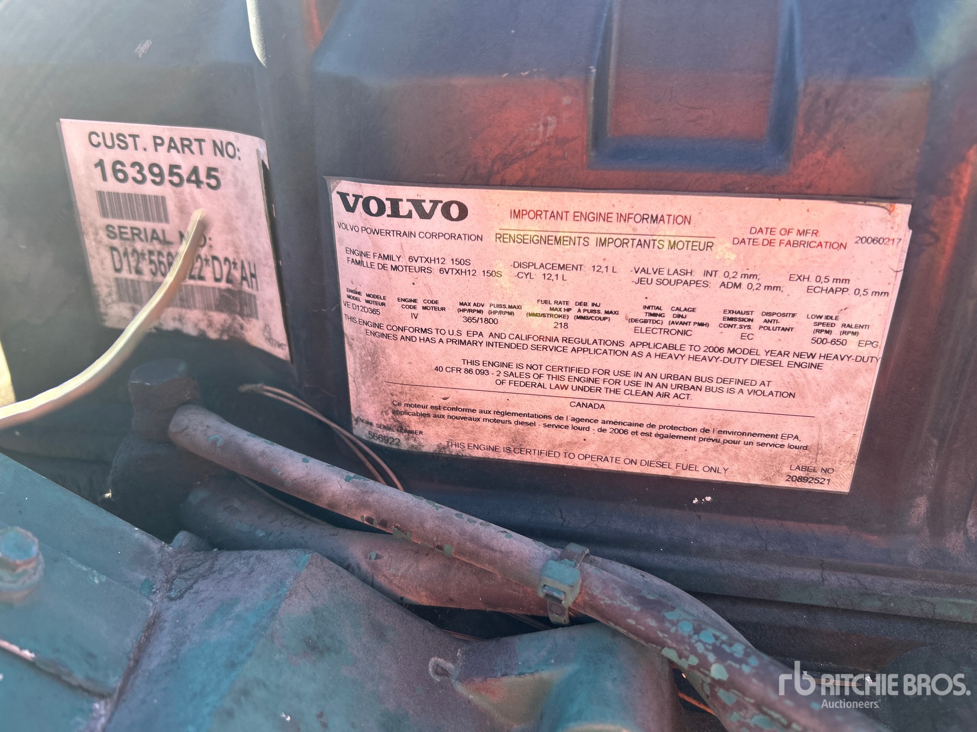 2006 US EPA Label, Volvo 6 Cylinder 12.8 L Diesel Engine