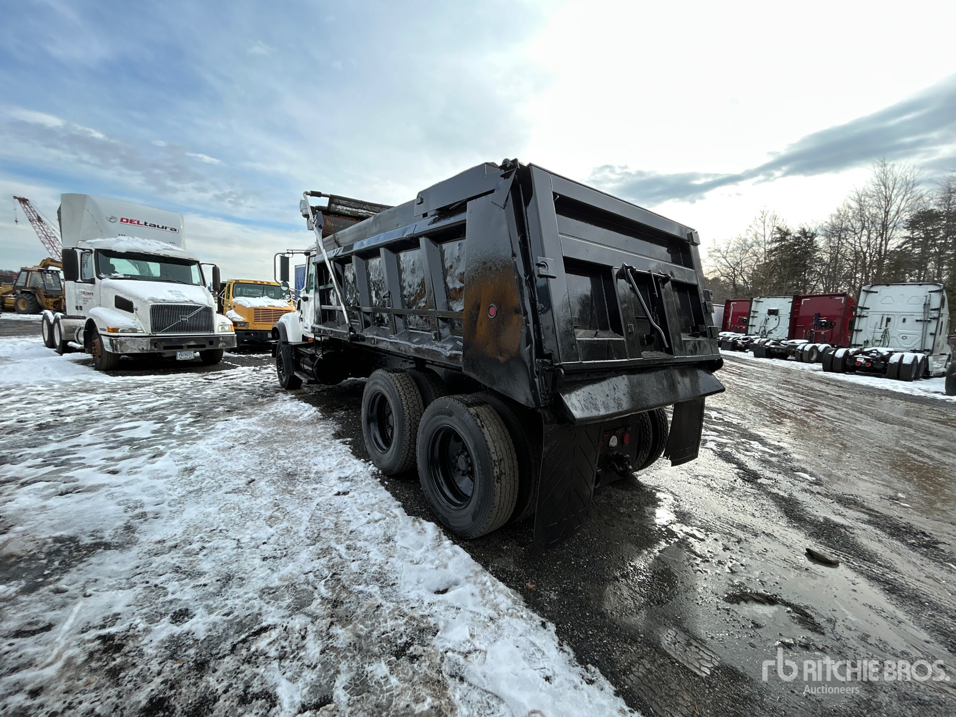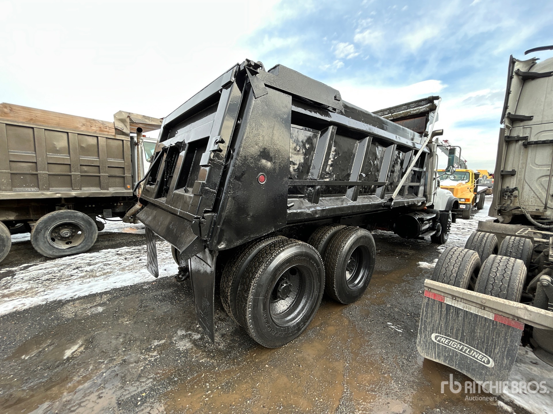 6 Cylinder Diesel Engine, 15047 Engine hrs, 18000 lb Front Axle, 44000 lb Rears, 62000 lb GVWR, 315/80R22.5 Front Tires, 11R24.5 Rear Tires, Camelback Suspension, 216 in Wheelbase, 16 ft Long x 3 ft 4 in High Steel Body, Electric Roll Tarp, High-Lift Tailgate, Tailgate Chute, Ringfeder