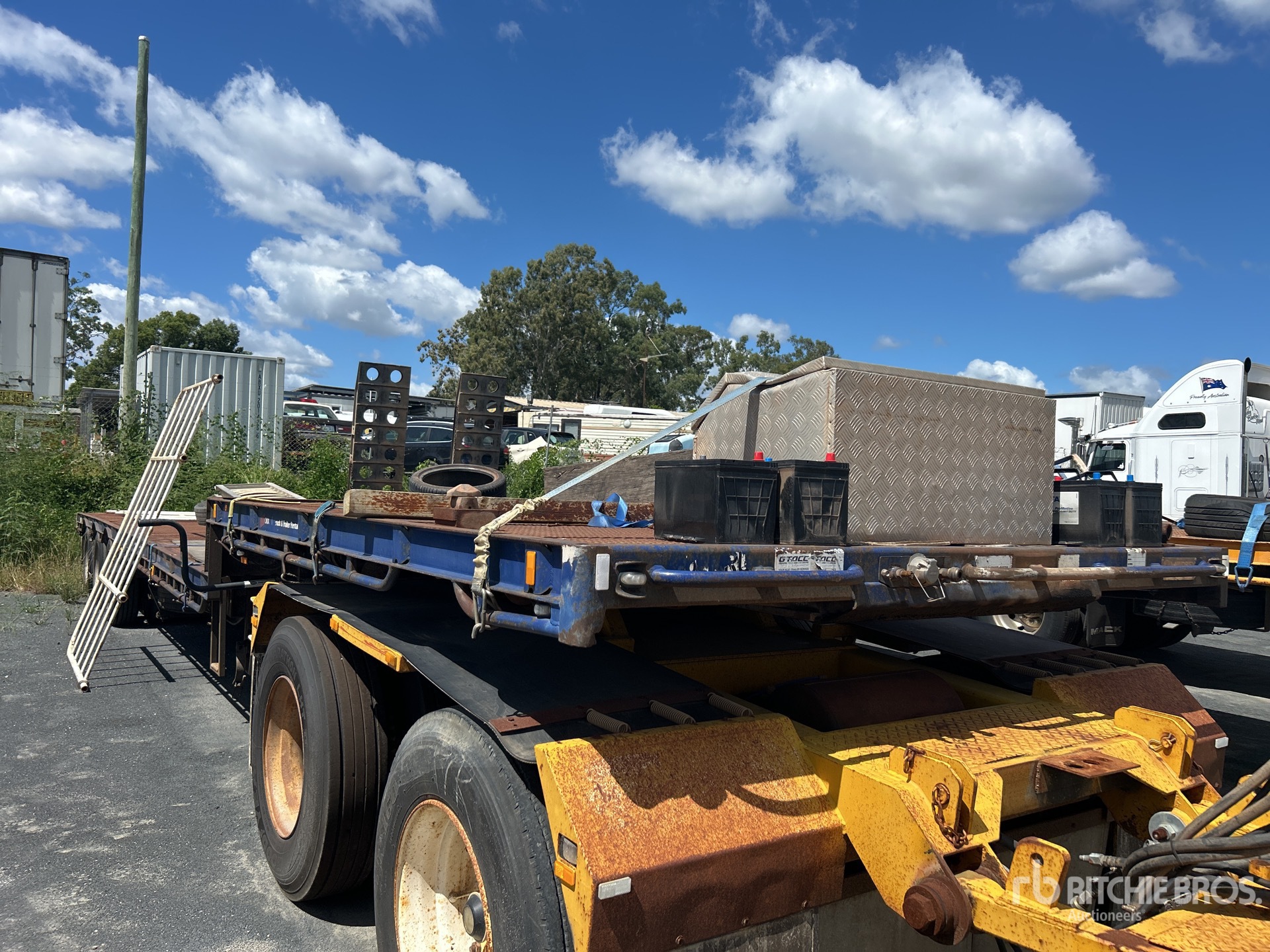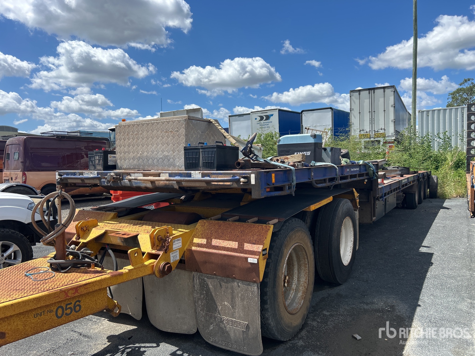 Les mesures sont fournies à titre d'estimation uniquement. Les dimensions réelles sous charge peuvent varier en fonction de la hauteur du camion/de la remorque et de la configuration/position de la machine chargée. Il incombe à l'acheteur de mesurer toutes les charges avant de quitter notre site de vente pour s'assurer que la charge peut être transportée en toute sécurité. Toutes les mesures doivent être vérifiées par l'acheteur. Ne vous fiez pas à ces mesures pour le transport.