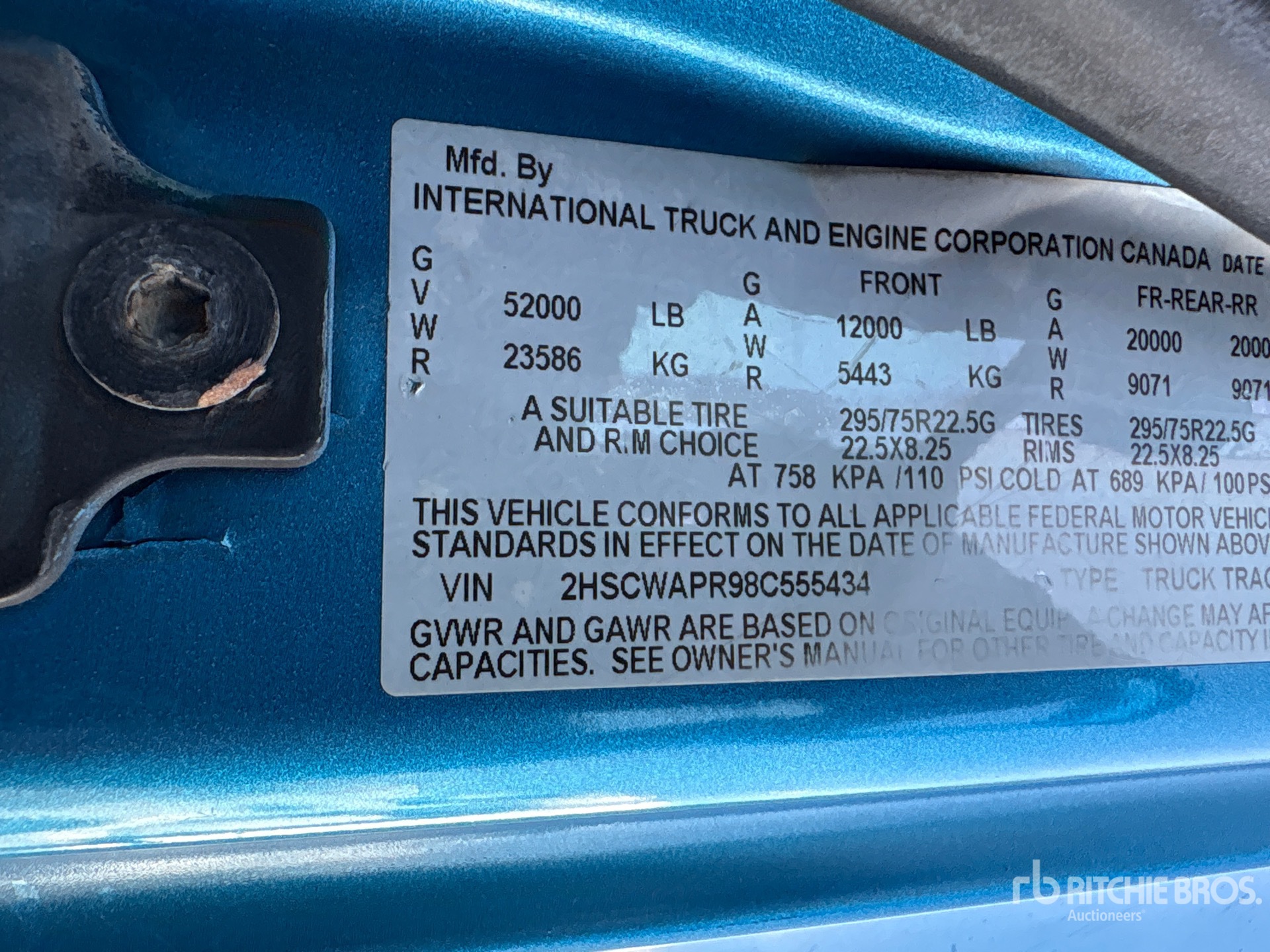 Cummins ISX 400 hp Engine, 2007 US EPA Label, 11718 Engine hrs, Eaton Fuller 10-Speed Manual Transmission, 12000 lb Front Axle, 40000 lb Rears, 52000 lb GVWR, Engine Brake, 201 in Wheelbase, Air Suspension, Aluminum Wheels, 11R22.5, Dual Fuel Tanks