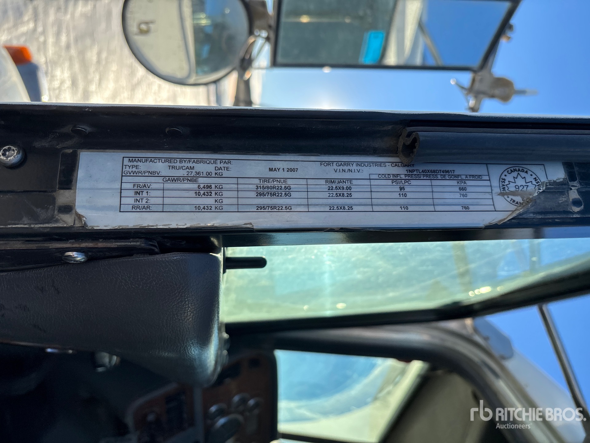 Cummins ISX 6 Cylinder 15 L Diesel 485 hp Engine, 2007 US EPA Label, CARB Compliant, 26213 Engine hrs, Engine Brake, Eaton Fuller 18-Speed Manual Transmission, Double Differential Locks, 14320 lb Front Axle, 46000 lb Rears, 60320 lb GVWR, Aluminum Wheels, 11R24.5, Air Trac Air Ride Suspension, 236 in Wheelbase, PTO, 15 ft Long x 3 ft 8 in High Steel Body, Electric Roll Tarp, Pintle Hitch