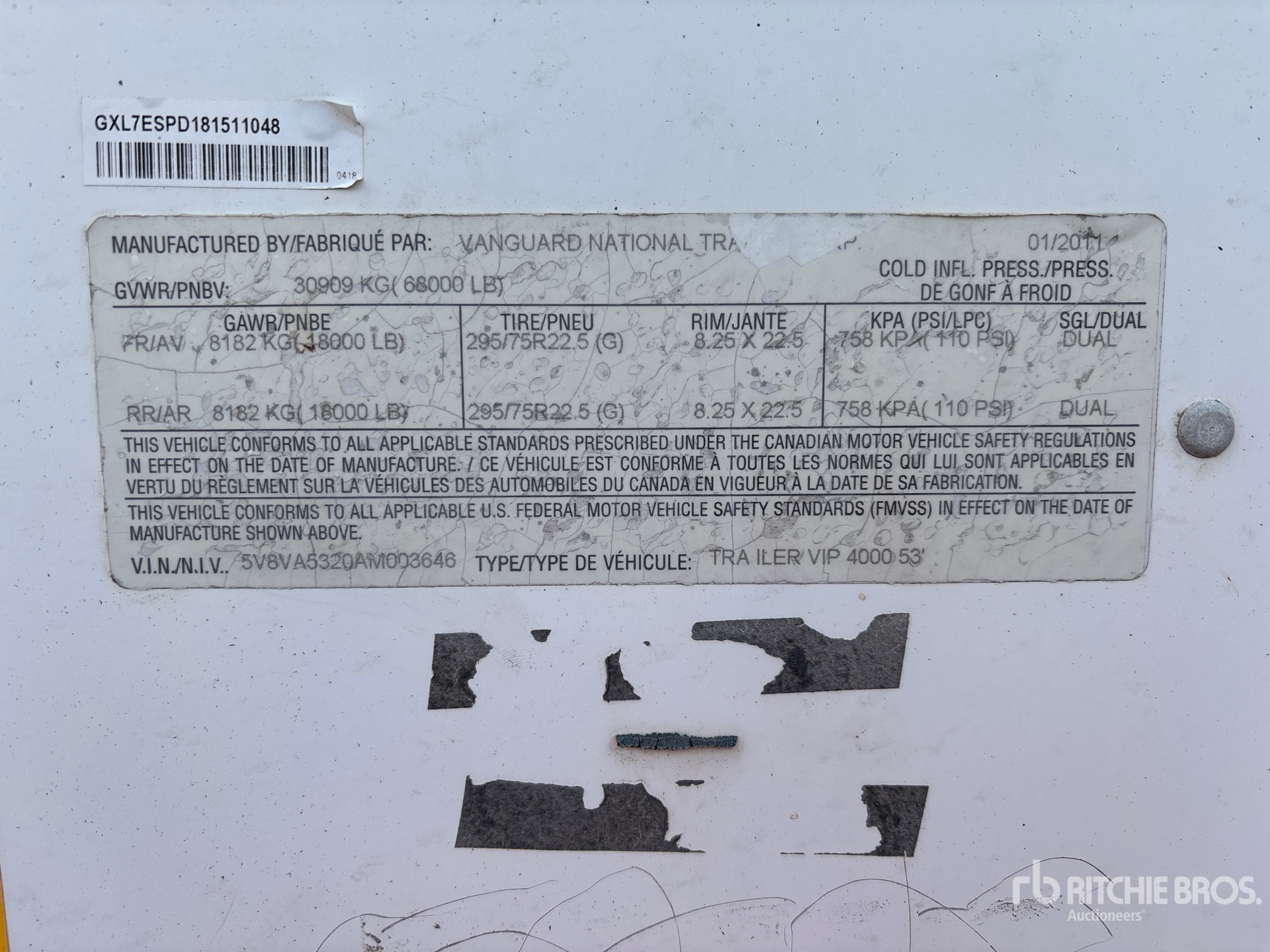Spring Sliding Suspension, Hardwood Floor, Swing Door, 295/75R22.5 Tires 68000 lb GVWR