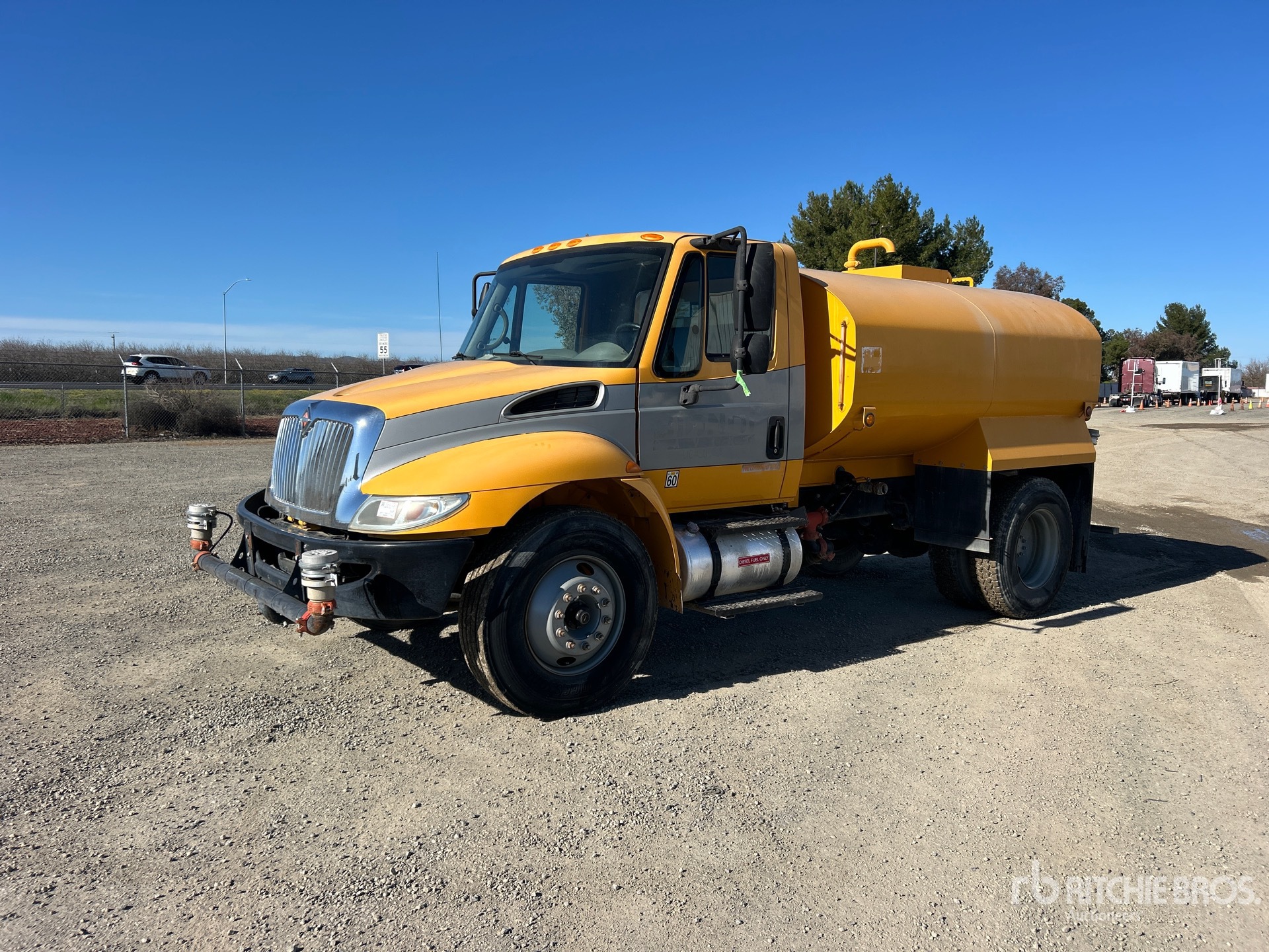 International MaxxForce DT 6 Cylinder 7.6 L Diesel 210 hp Engine, 2009 US EPA Label, Automatic Transmission, 10000 lb Front Axle, 17500 lb Rears, 25999 lb GVWR, 11R22.5, Spring Suspension, 158 in Wheelbase, PTO, Steel Tank, Berkeley PTO Driven Pump, 6 ft 10 in, Spray Bar, Hose Reel, Front Spray, Rear Spray, Side Spray