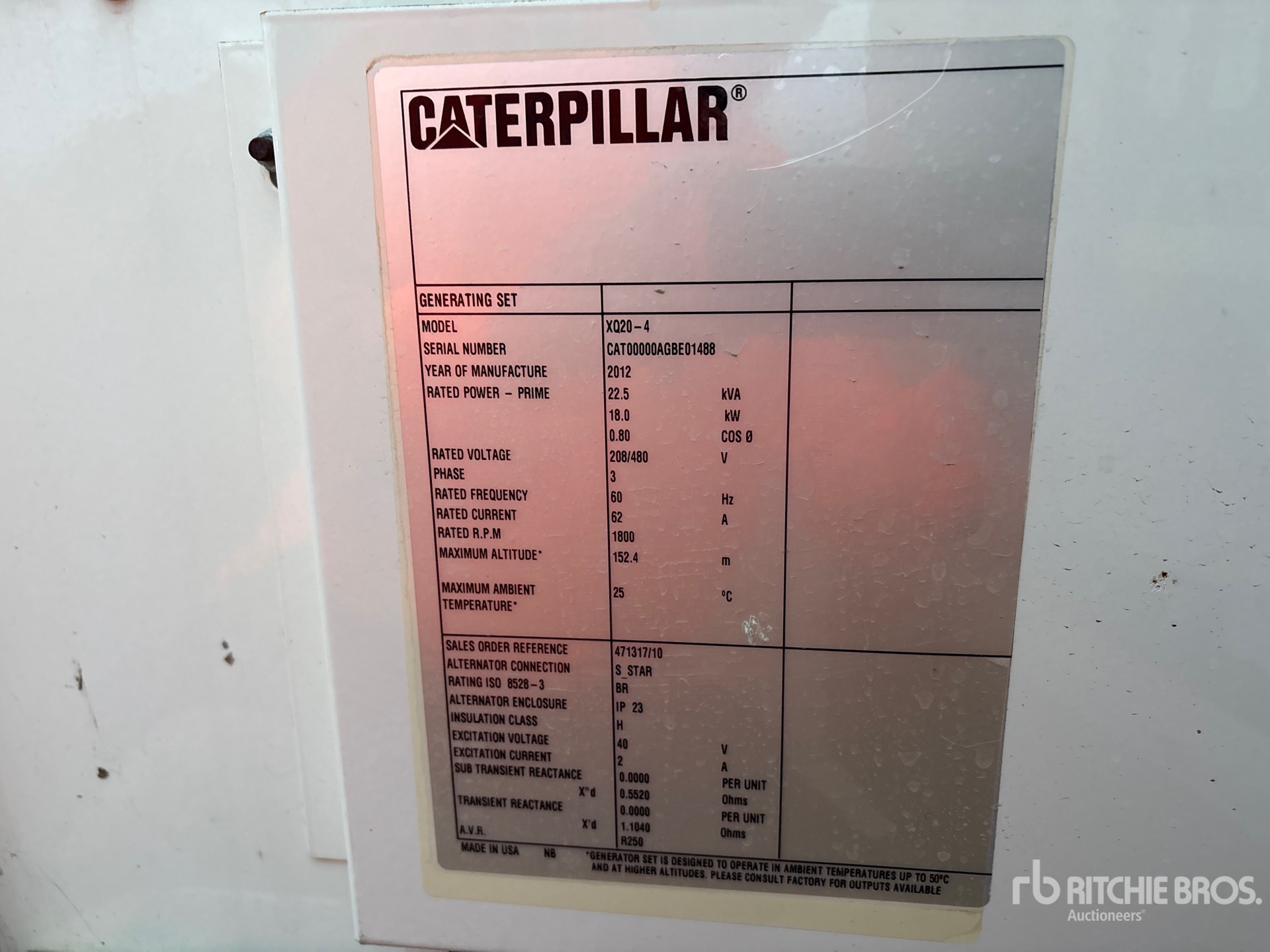 Cat C2.2 4 Cylinder Diesel Engine, 22.5 kVA/18 kW Rated 3 Phase Output, 208 V / 480 V Rated Voltage, 240 V & 120 V Receptacles