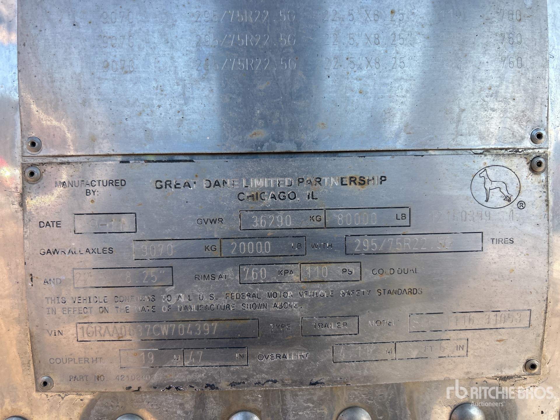 Thermo King SB-310 Refrigeration Unit, Aluminum/Steel Combination Frame, Air Ride Sliding Suspension, Aluminum Floor, Swing Door, 11R22.5 Tires, 80000 lb GVWR