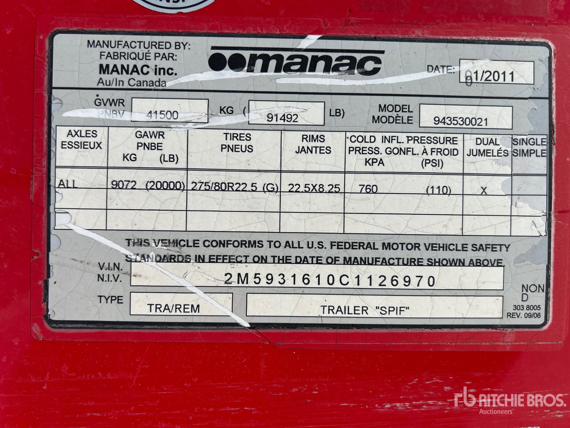 Spring Suspension, Hardwood Floor, Swing Door, 11R22.5 Tires, 91492 lb GVWR