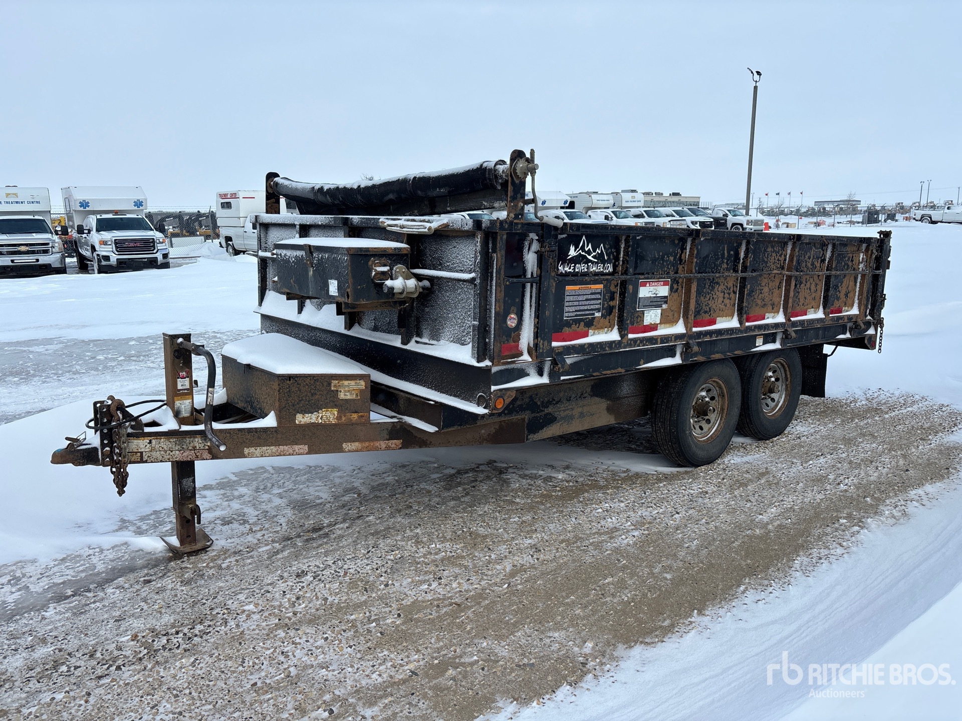 Ball Hitch, Spring Suspension, Electric Brakes, 14 ft Body, 24 in Side Walls, Steel Body, Manual Roll Tarp, 2-Way Tailgate, 235/80R16 Tires, 14000 lb GVWR