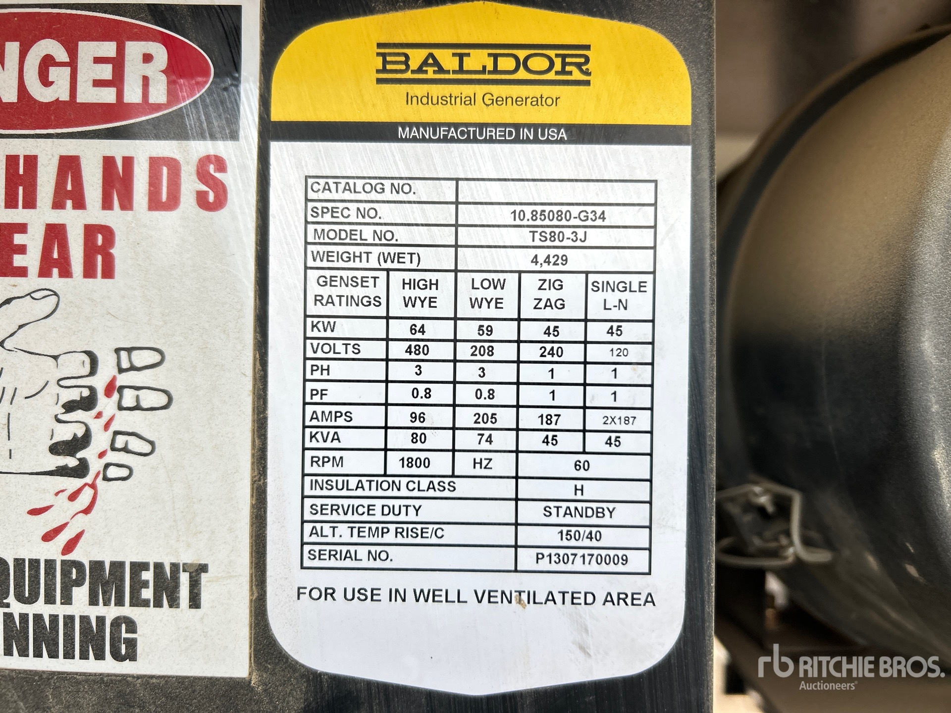 1. 2013 Baldor TS80-3J 64 kW Mobile Groupe électrogène (Inoperable) (article principal)