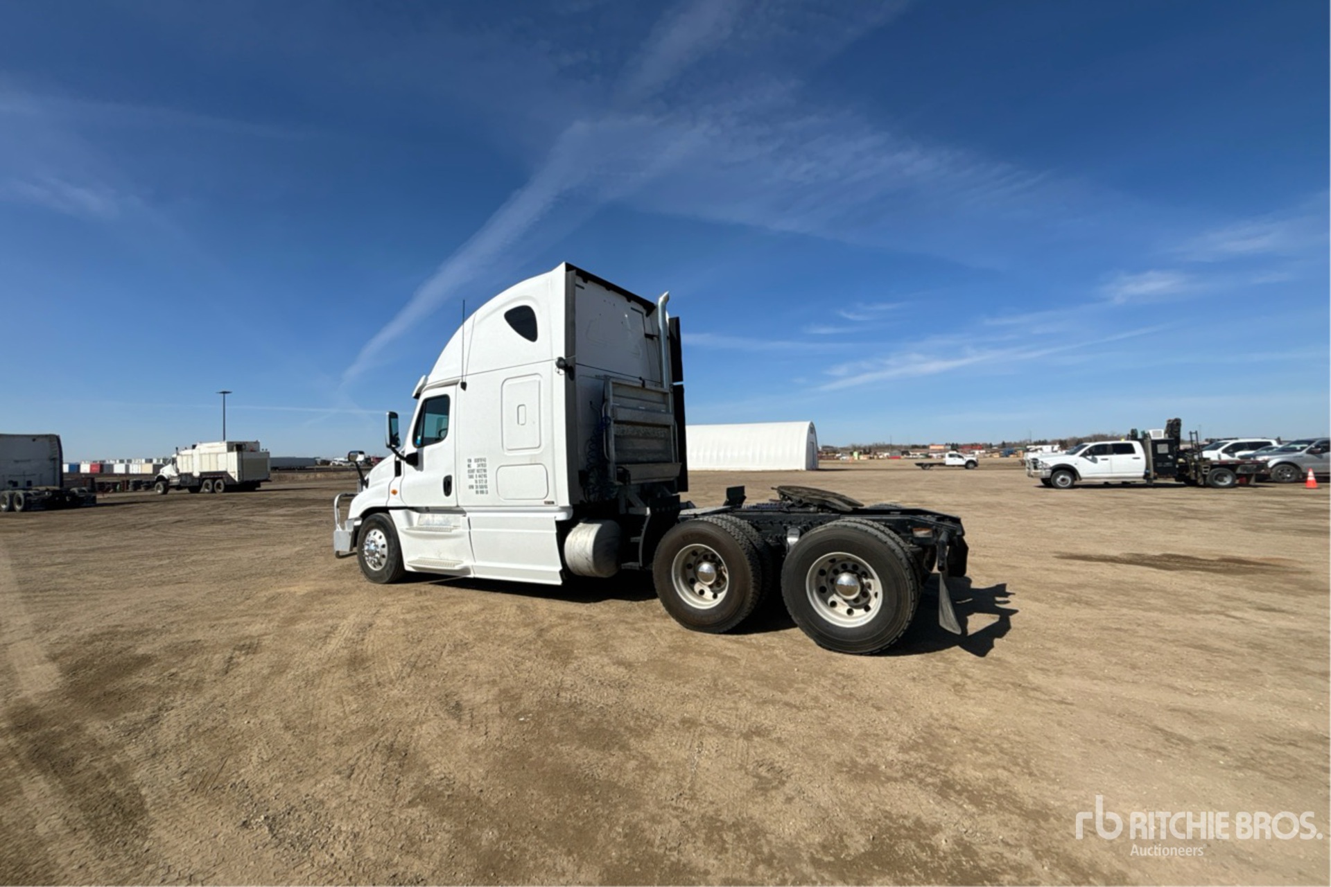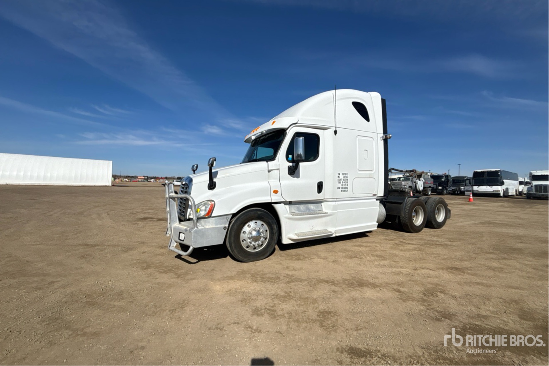 Detroit DD15 505 hp Engine, Engine Coolant Heater, Eaton Fuller Ultra Shift 13-Speed Automatic Transmission, 13220 lb Front Axle, 40000 lb Rears, 53220 lb GVWR, Engine Brake, Double Differential Locks, 60 in High Rise Sleeper Cab, Bunk Beds, 232 in Wheelbase, Air Suspension, 11R22.5 Front Tires, 11R22.5 Rear Tires, Air Sliding 5th Wheel, Dual Fuel Tanks, Headache Rack