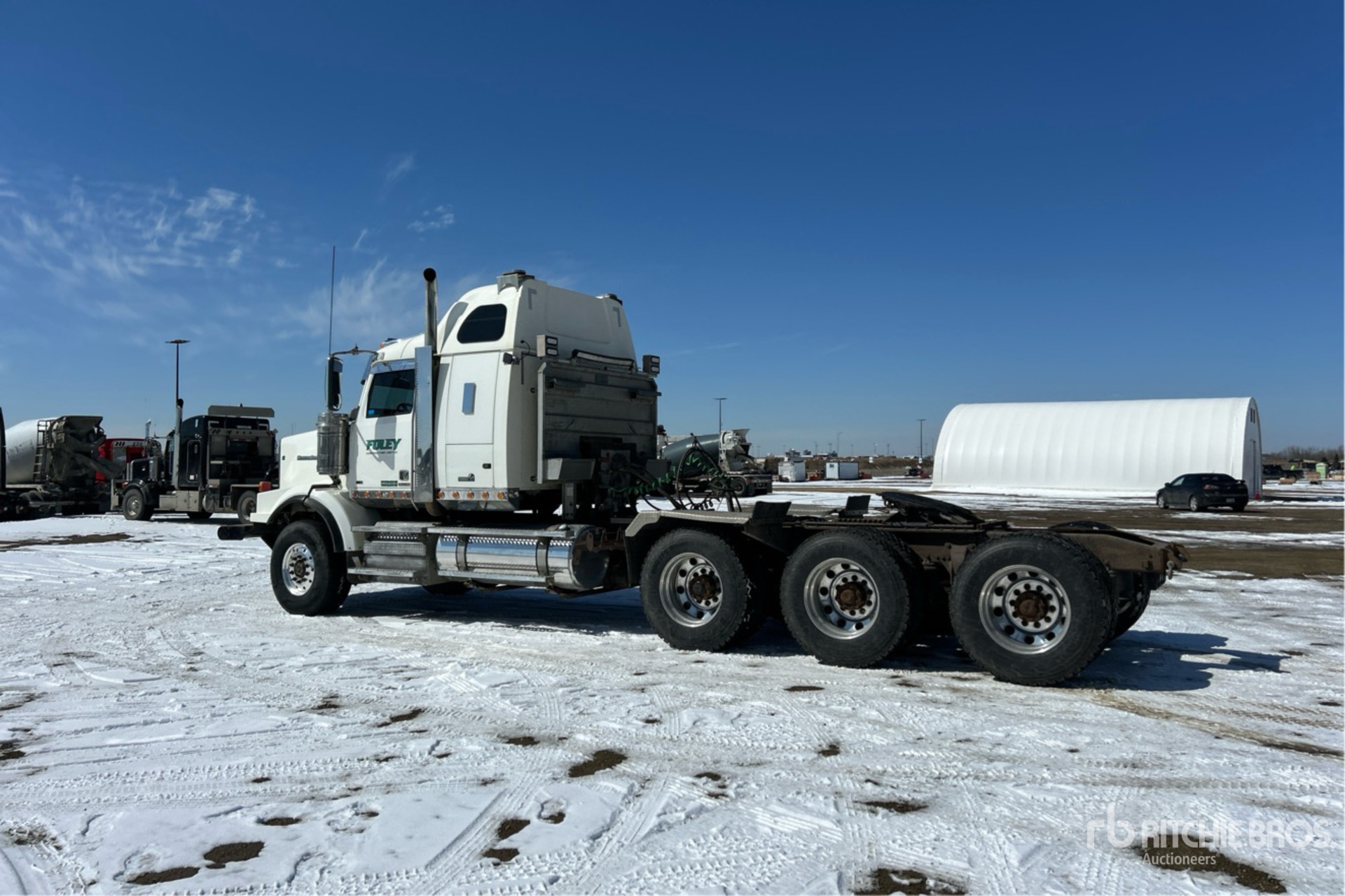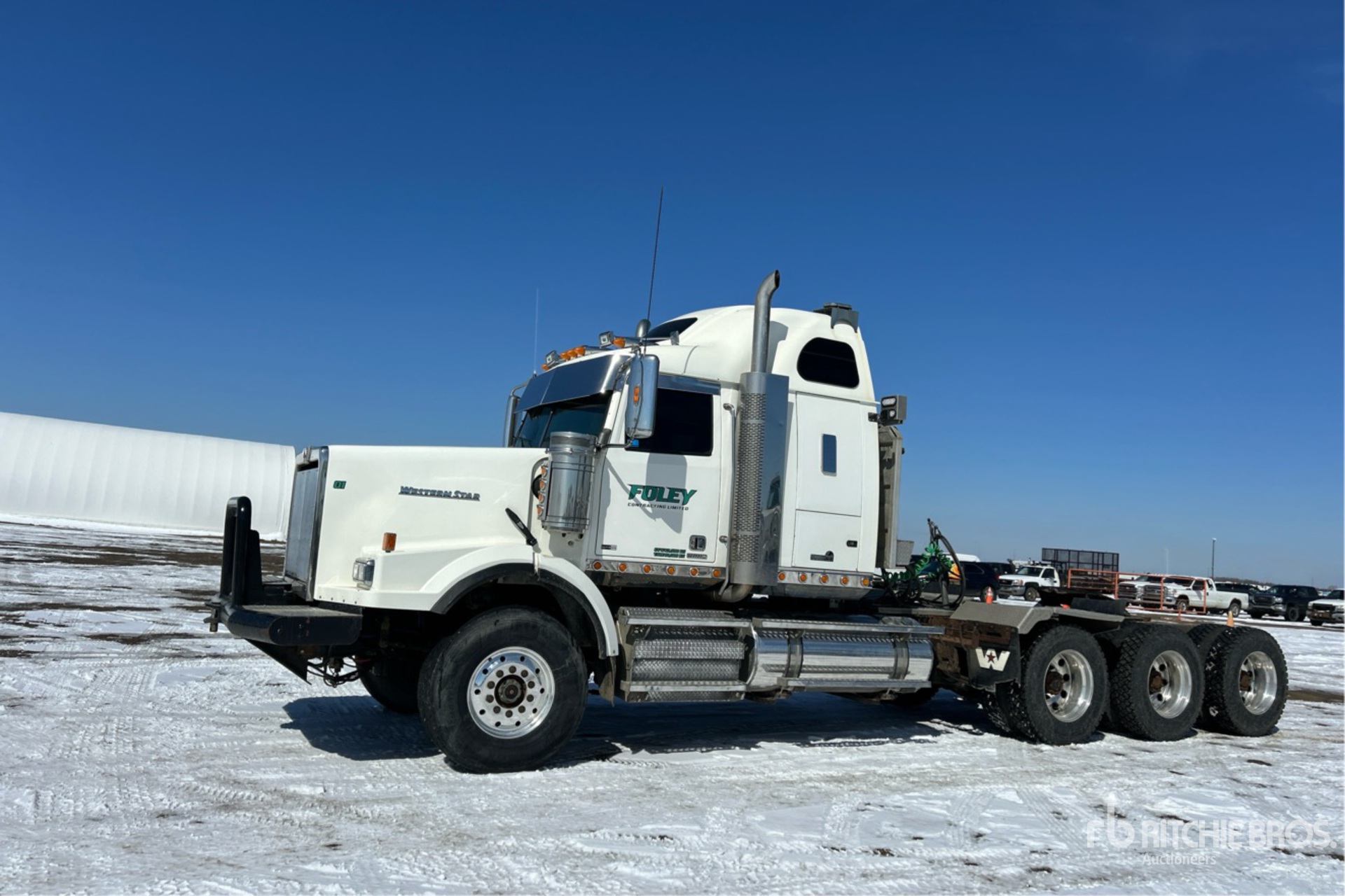 Detroit DD16 600 hp Engine, Engine Coolant Heater, 13317 Engine hrs, Eaton Fuller RTLO-20918B 18-Speed Manual Transmission, 16000 lb Front Axle, 53250 lb Rears, 69250 lb GVWR, 48 in High Rise Sleeper Cab, 260 in Wheelbase, Aluminum Wheels, 425/65R22.5 Front Tires, 11R24.5 Rear Tires, Dual Steering Boxes, Wet Kit, Air Sliding 5th Wheel, Dual Fuel Tanks, Headache Rack, Power Windows, Engine Brakes, Neway Air Ride Suspension, PTO, Wet Kit