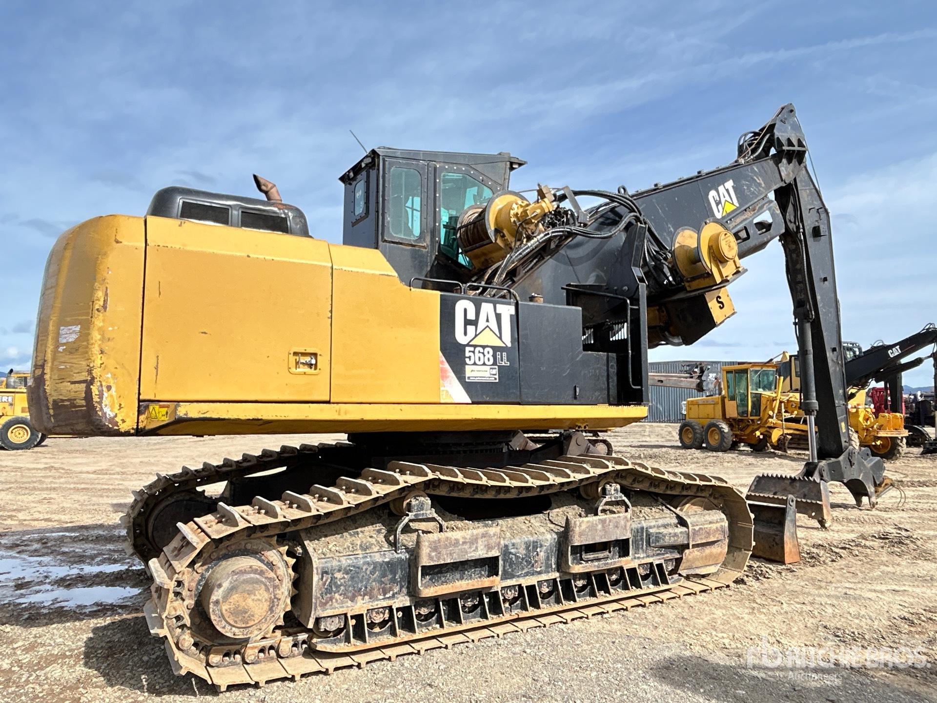 Air Conditioner, Straight Travel Pedal, Cab Riser, Cab Screens, Hydraulic Tilting Cab, Cat C9.3 316 hp 9.3 L Diesel Engine, 15 ft 6 in Stick, Auxiliary Hydraulic Plumbing, Backfill Blade, 2 Winch Drums, 28 in Single Grouser Track Shoes