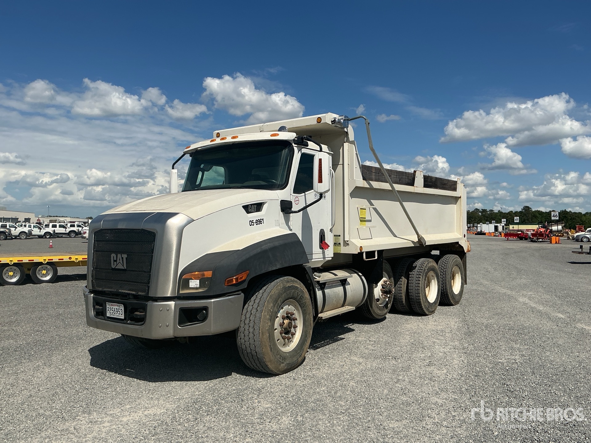 Located in Lane 25 Spot 4, Cat CT13 6 Cylinder Diesel Engine, Engine Brake, Automated Transmission, Differential Lock, 20000 lb Front Axle, 46000 lb Rears, 66000 lb GVWR, Air Ride Cab, Aluminum Front Wheels, 425/65R22.5 Front Tires, 11R22.5 Rear Tires, Air Lift Pusher Axle, Dual Steering Boxes, Hendrickson Haulmaax Rubber Suspension, 206 in Wheelbase, OX Bodies 16 ft 10 in Long x 4 ft 3 in High Steel Body, Electric Roll Tarp