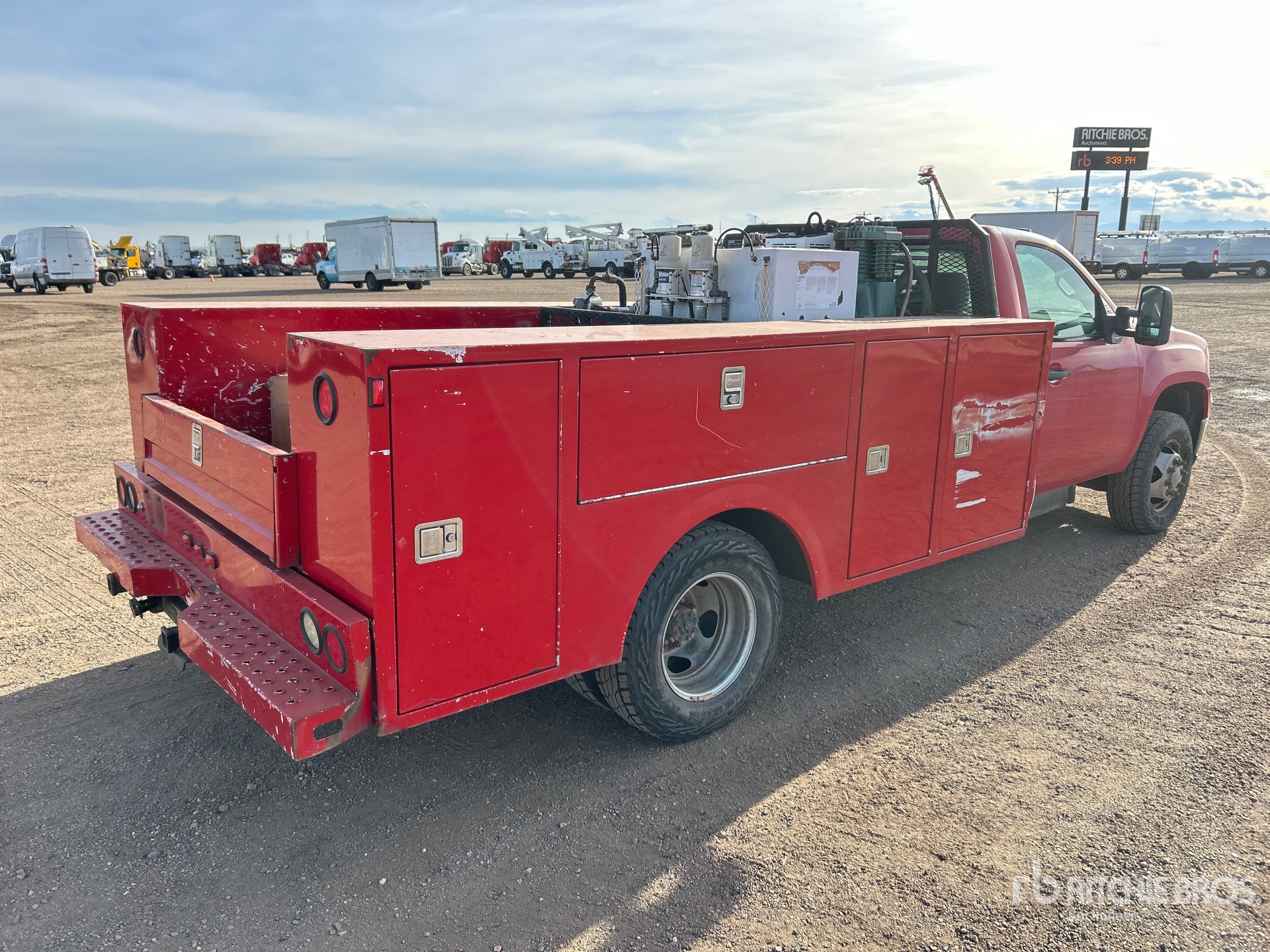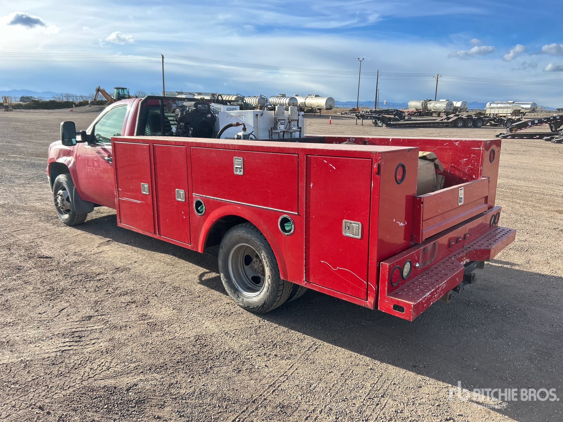 Duramax LML V8 6.6 L Diesel Engine, 2014 US EPA Label, Requires Diesel Exhaust Fluid, Automatic Transmission, 6000 lb Front Axle, 9750 lb Rears, 13200 lb GVWR, 235/80R17, Spring Suspension, 162 in Wheelbase, Warner 11 ft Body, Vanair Airnarc 250 24 cfm Gasoline Air Compressor, Vanair 5 kW 250 A Gasoline 3-in-1 Welder
