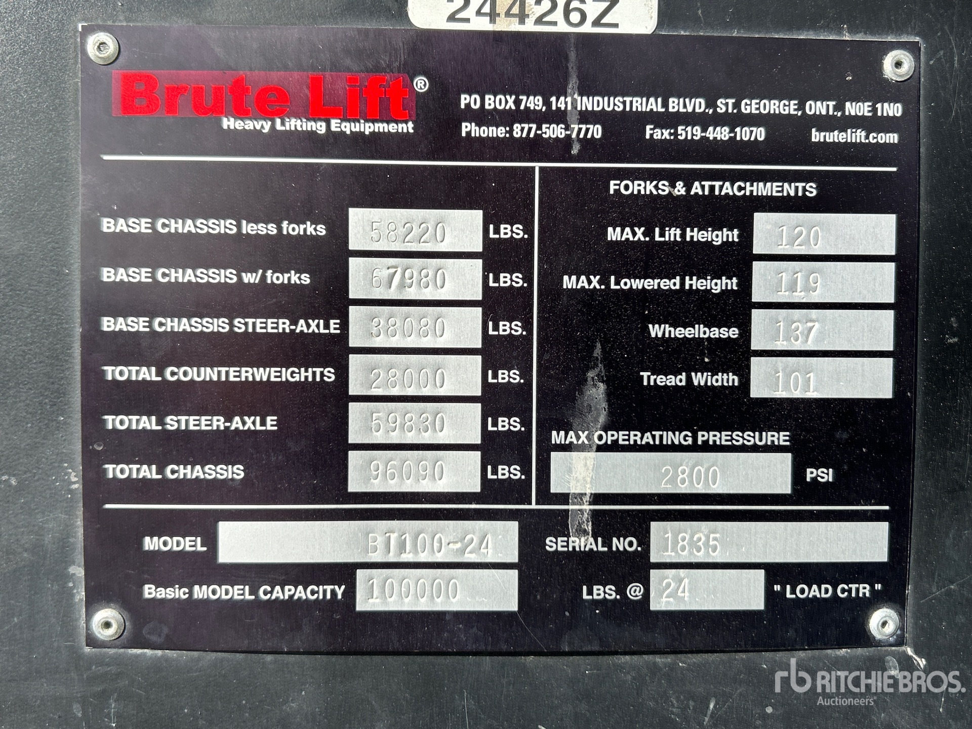 Les informations détaillées de l'équipement ont une portée limitée. Ritchie Bros. Auctioneers n'a inspecté aucun aspect ou composant de l'équipement autre que ceux expressément énoncés dans le présent document. Sauf indication expresse, nous ne faisons aucune déclaration ou garantie, expresse ou implicite, concernant l'équipement et/ou ses composants, y compris, sans s'y limiter, toute déclaration ou garantie concernant le fonctionnement, la conformité à toute norme ou exigence de sécurité de toute autorité ou tout organisme de réglementation applicable, l'adéquation à un usage particulier ou la qualité marchande. Nous vous conseillons fortement d'effectuer vous-même une inspection détaillée de l'équipement avant d'enchérir.