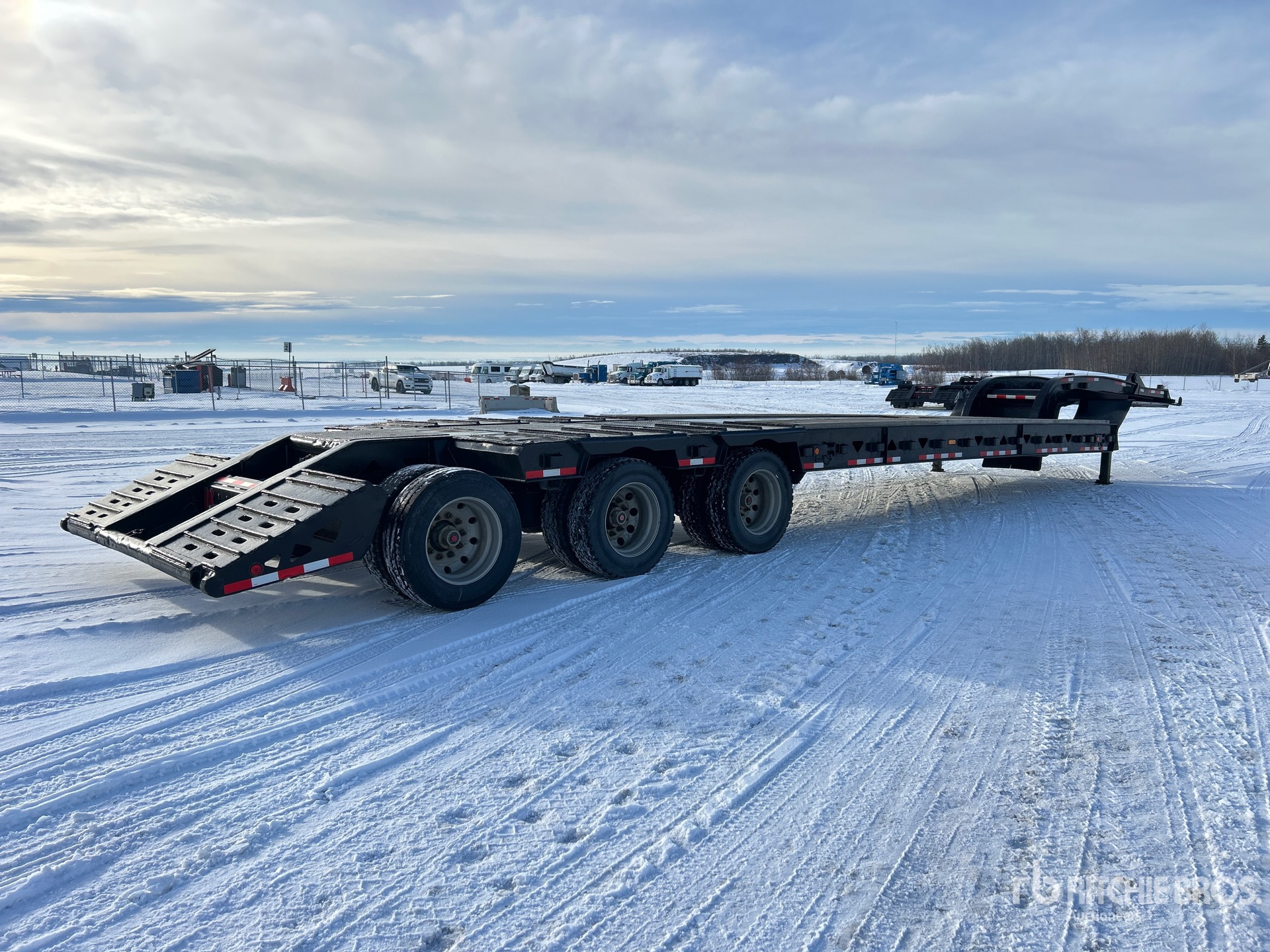 Located in Lane 4 Spot 99, 133500 lb GVWR, Neck Extension, 35 ft 6 in x 120 mm Main Deck, Deck Over Tires, Air Ride Suspension, Plumbed for Booster Axle, Complete-Retirement-Dispersal-for-Mur-Cal-Services-Ltd