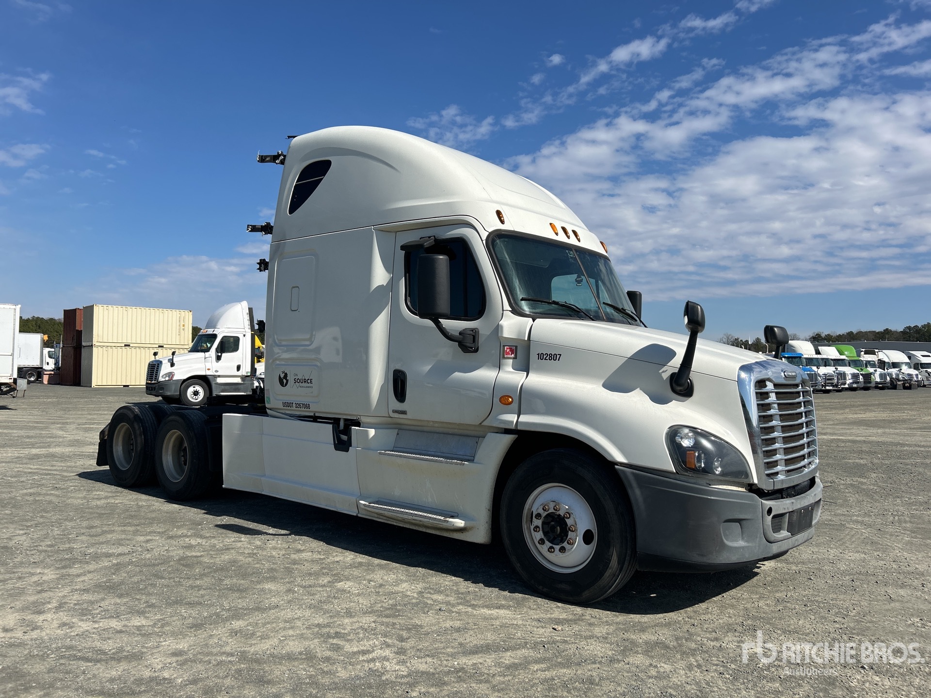 Detroit DD15 6 Cylinder 14.8 L Diesel 455 hp Engine, 2015 US EPA Label, Requires Diesel Exhaust Fluid, 27978 Engine hrs, Engine Brake, Eaton Fuller FRO-16210C 10-Speed Manual Transmission, 13220 lb Front Axle, 40000 lb Rears, Detroit DA-RT-40.0-4 Drive Axles, 3.31:1 Axle Ratio, 53220 lb GVWR, Air Ride Cab, 72 in High Rise Sleeper Cab, Bunk Beds, Aluminum Rear Wheels, 11R22.5, Airliner Air Ride Suspension, 228 in Wheelbase, Air Sliding 5th Wheel, Dual Fuel Tanks