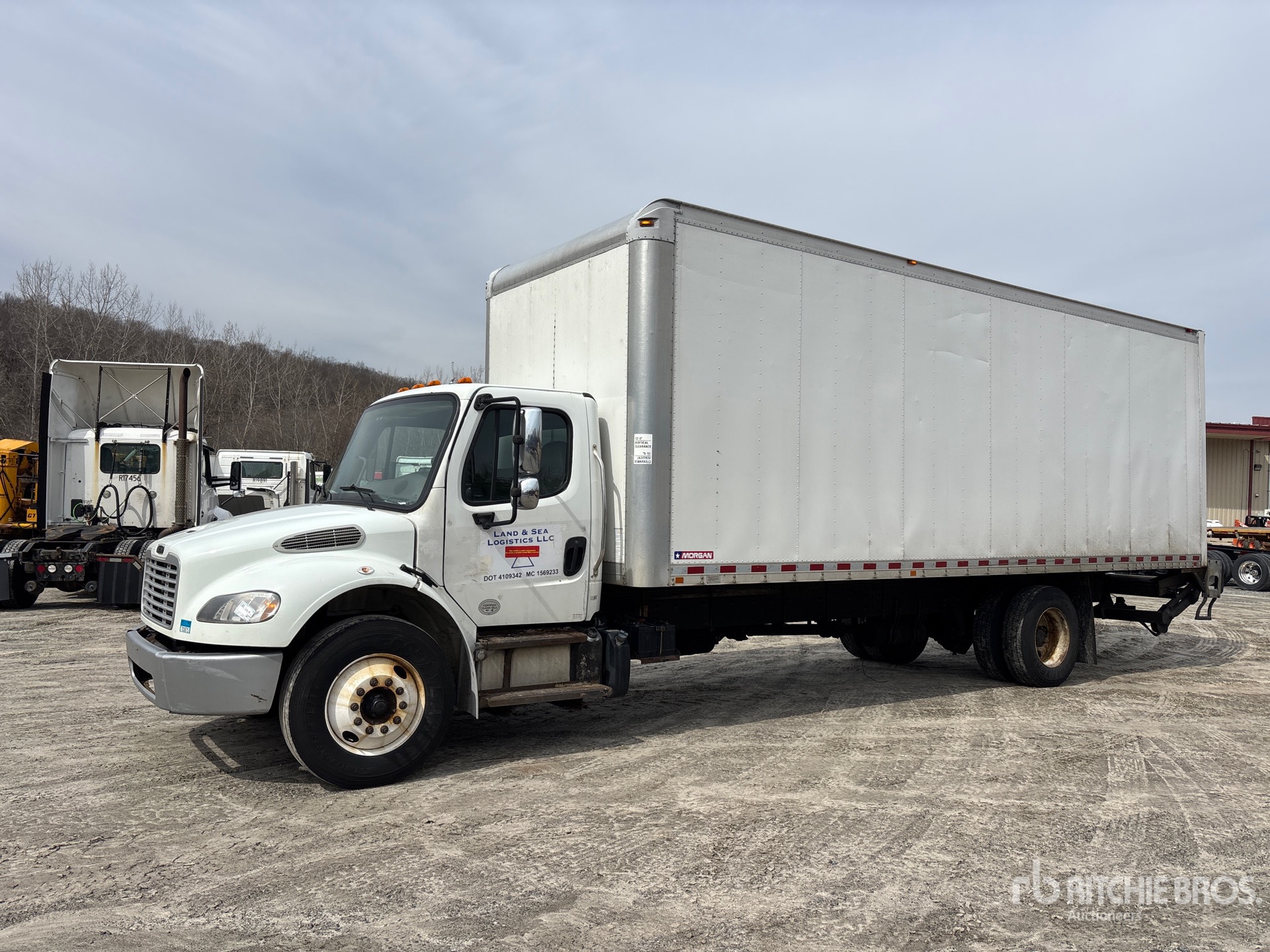 Cummins ISB 6 Cylinder 6.7 L Diesel 240 hp Engine, Requires Diesel Exhaust Fluid, 11890 Engine hrs, Allison 2500 Automatic Transmission, 10000 lb Front Axle, 17500 lb Rears, Detroit DA-RS-17.5 Drive Axles, 5.22:1 Axle Ratio, 26000 lb GVWR, 295/75R22.5, Airliner Air Ride Suspension, 270 in Wheelbase, Morgan 26 ft x 102 in Wide x 97 in High Body, Curbside Door, Liftgate