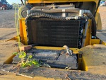 The drivetrain would not engage. The left and right front tires are damaged and off the bead.