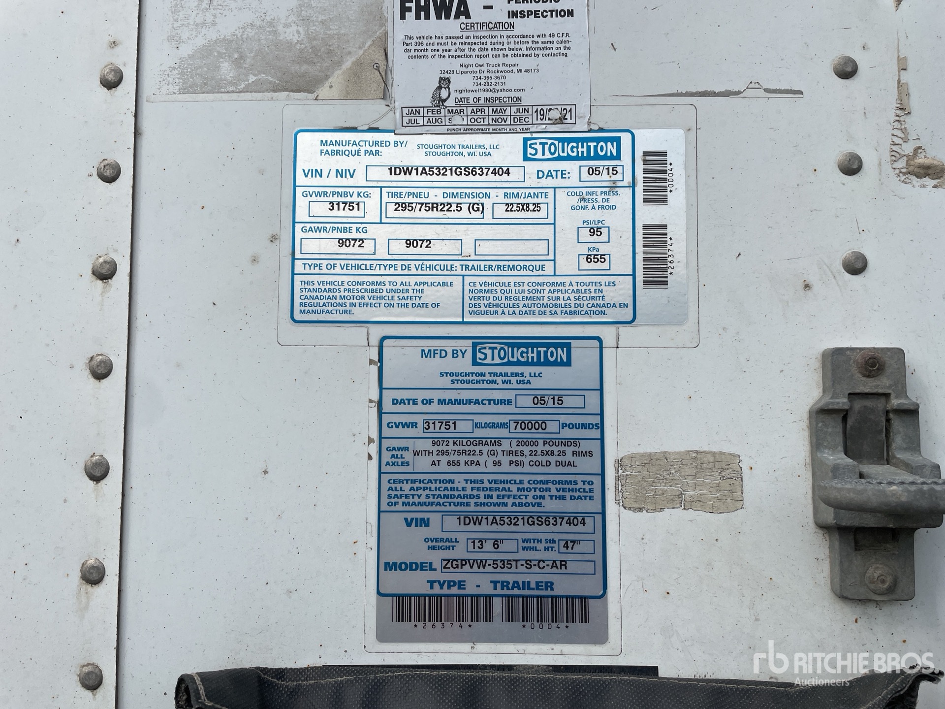 Located in Lane 4 Spot 27, Air Ride Sliding Suspension, Hardwood Floor, Swing Door, 11R22.5 Tires, 70000 lb GVWR