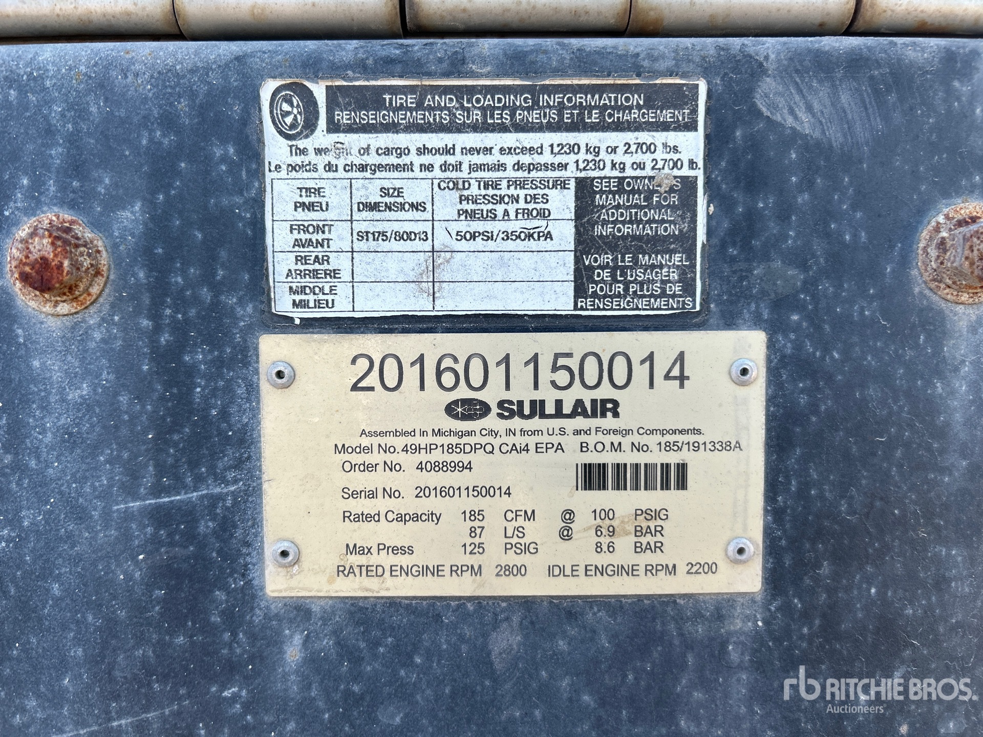 Un employé qualifié de Ritchie Bros. a recueilli des informations détaillées sur l'équipement et a effectué des tests fonctionnels sur les composants majeurs de cet actif. Vous, ou un mandataire, pouvez également inspecter tous les articles disponibles sur site avant de faire une offre le jour de la vente aux enchères.