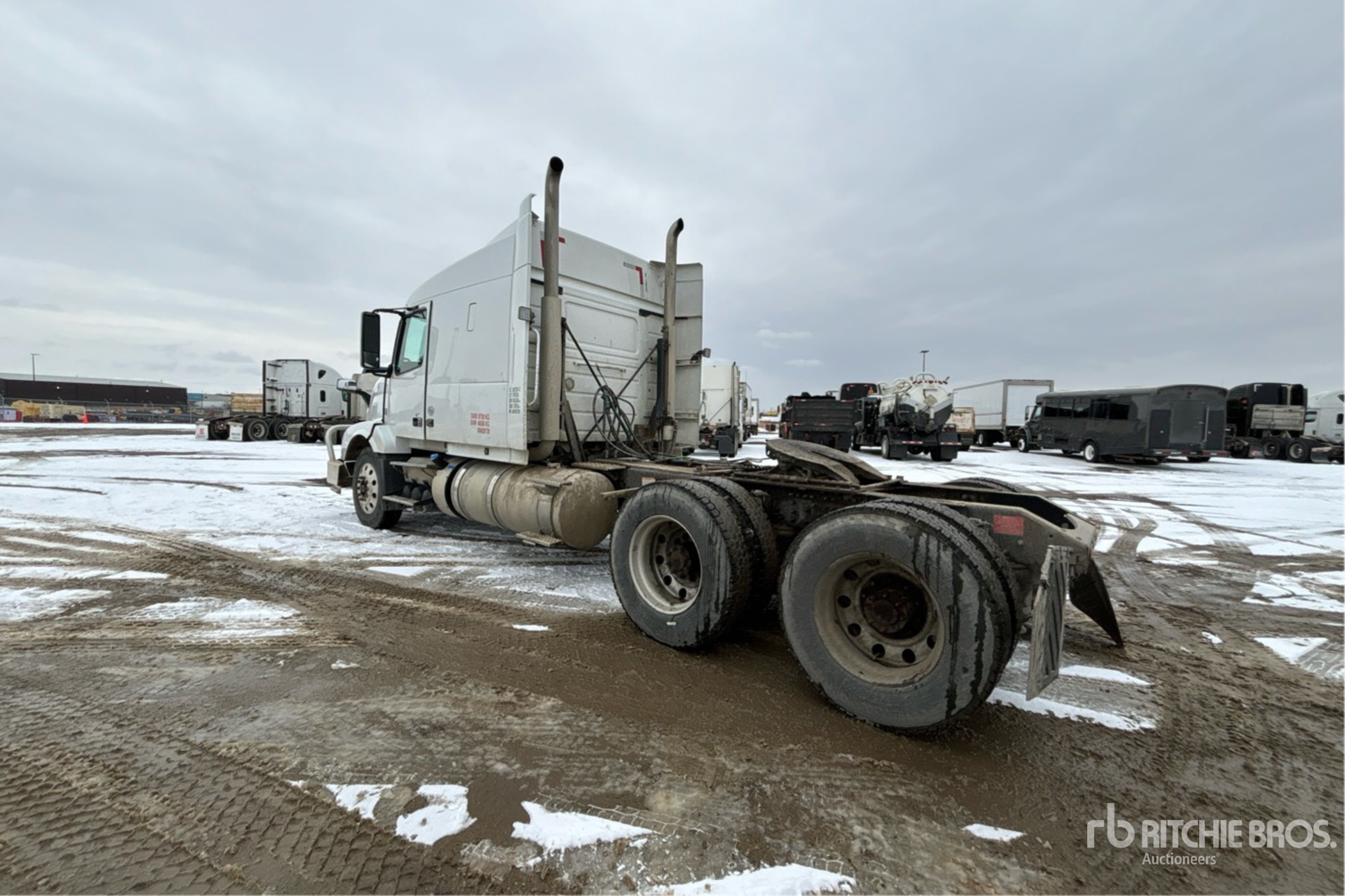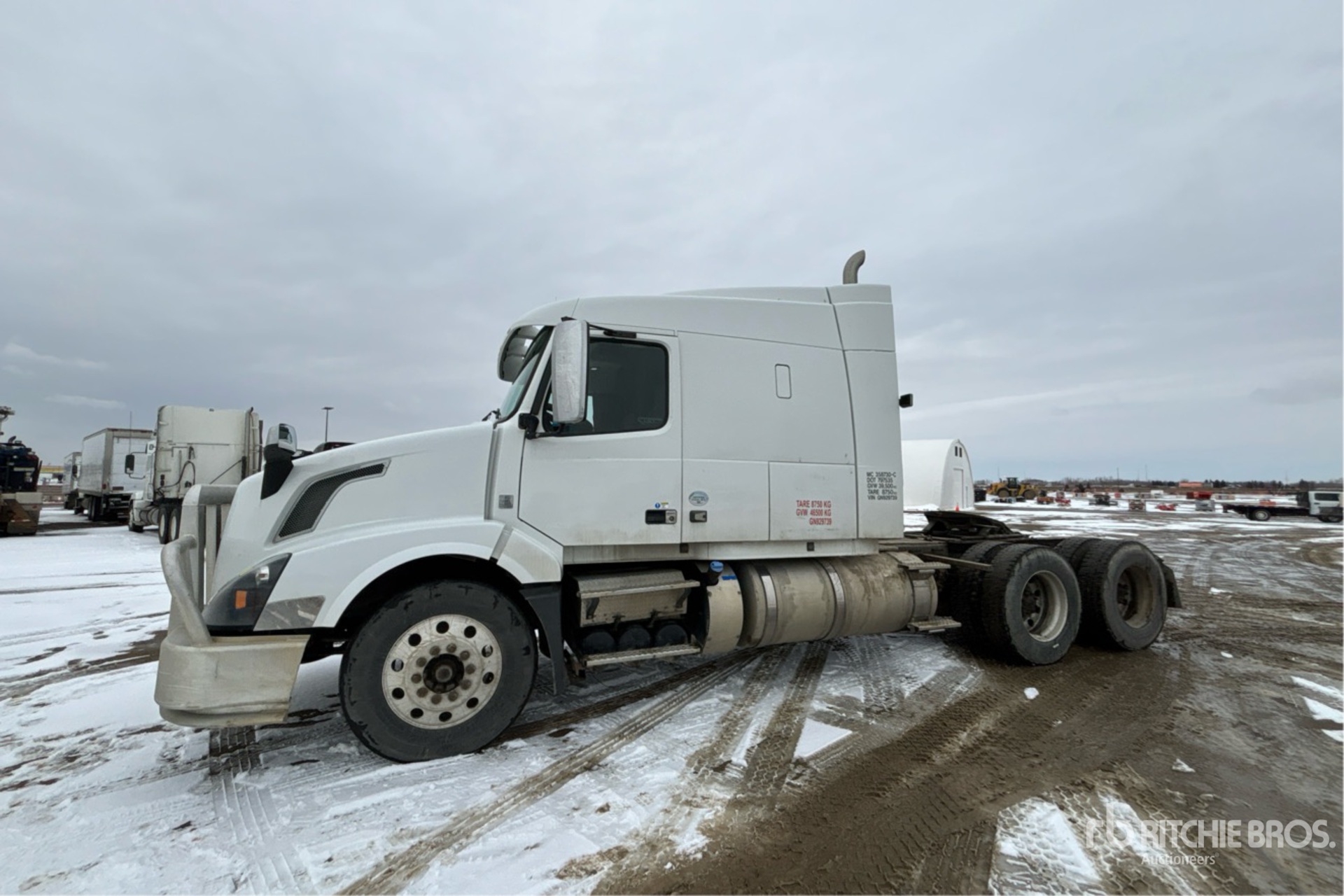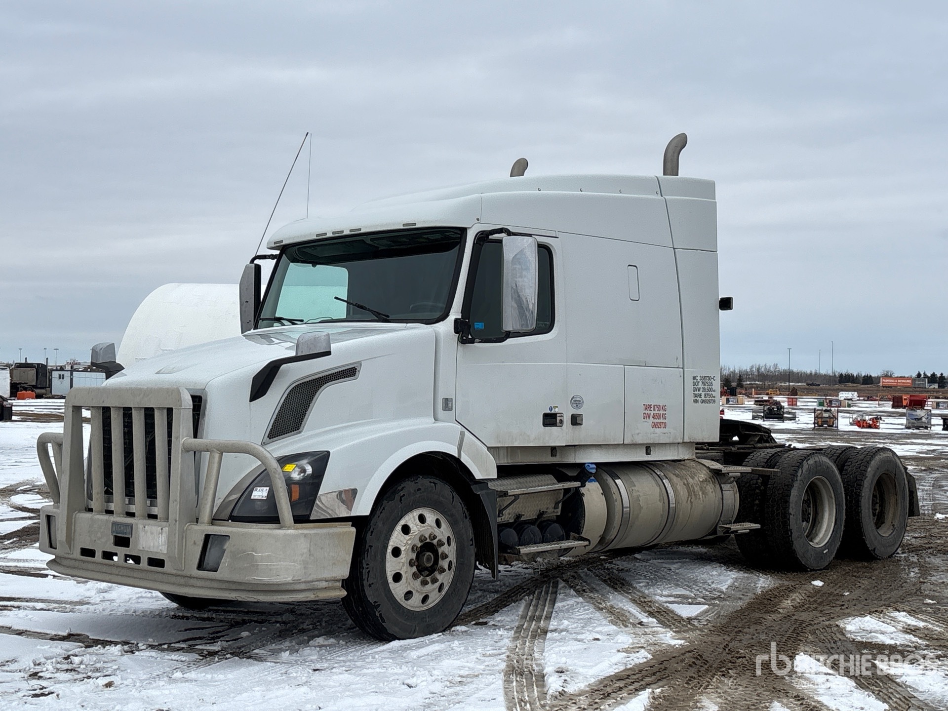Located in Lane 35 Spot 55, Volvo D16 550 hp Engine, 2015 US EPA Label, Volvo ATO3112D 12-Speed Automated Transmission, 12320 lb Front Axle, 40000 lb Rears, 59200 lb GVWR, Engine Brake, Differential Lock, 61 in Sleeper Cab, Bunk Beds, 226 in Wheelbase, Air Suspension, 11R24.5, Air Sliding 5th Wheel, Dual Fuel Tanks