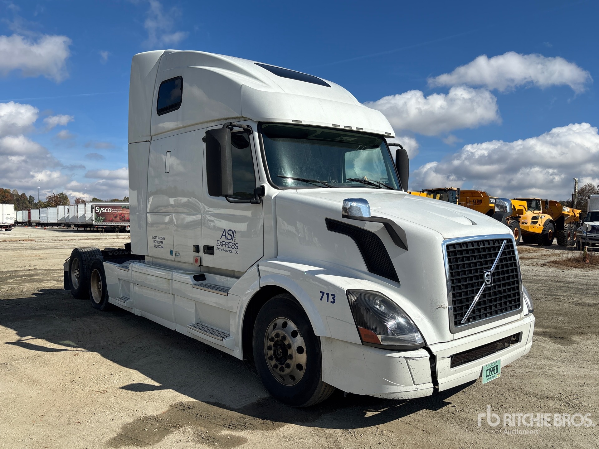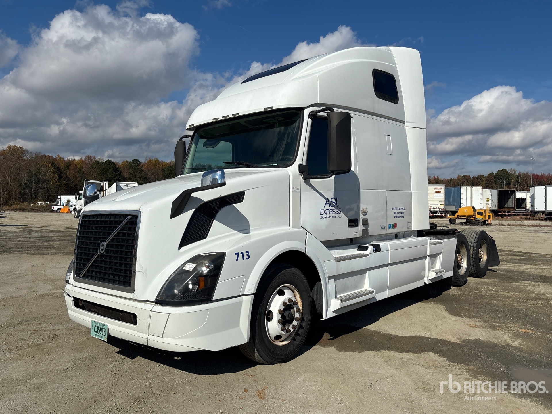Located in Lane 2 Spot 26, Volvo D13J 455 hp Engine, 2015 US EPA Label, 21663.5 Engine hrs, Volvo AT2612D 12-Speed Automated Transmission, 13200 lb Front Axle, 38000 lb Rears, 51200 lb GVWR, High Rise Sleeper Cab, 232 in Wheelbase, Air Suspension, Aluminum Wheels, 295/75R22.5 Front Tires, 445/50R22.5 Super Singles Rear Tires, Air Sliding 5th Wheel, Dual Fuel Tanks
