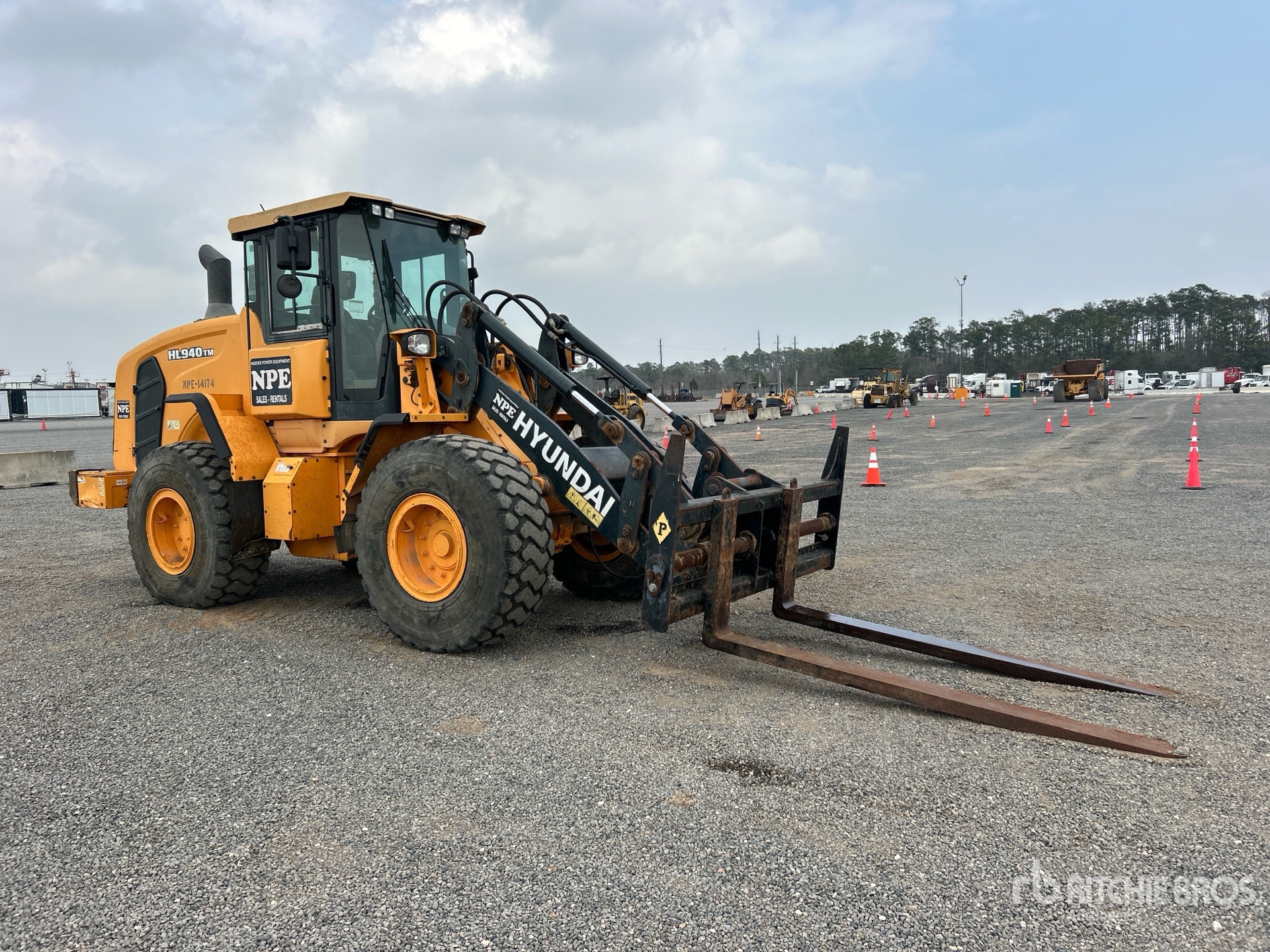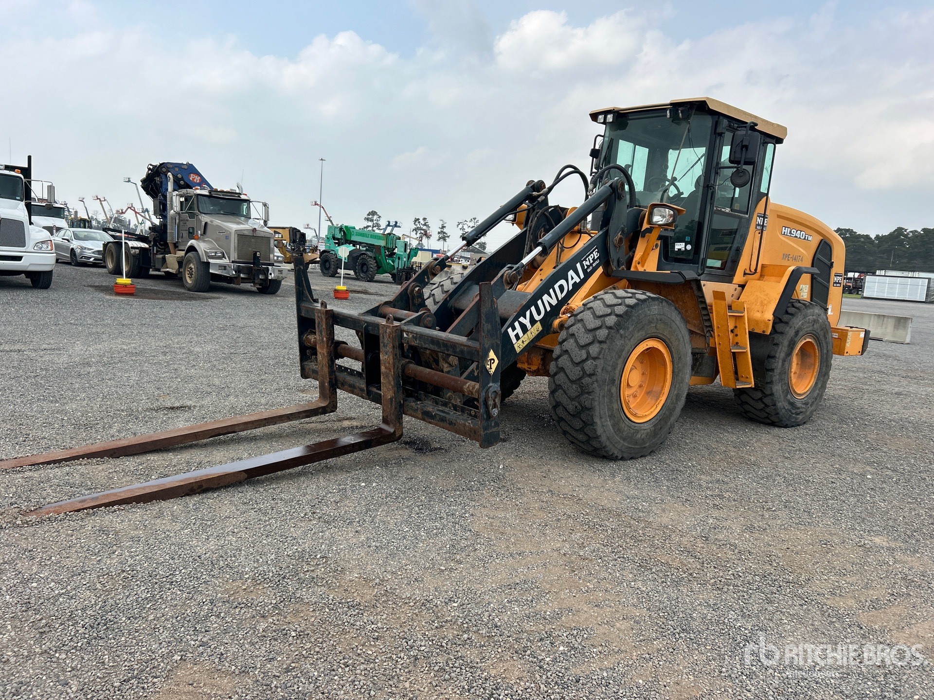 Located in Lane 7 Spot 3, Enclosed Cab, Air Conditioner, Hydraulic Coupler, Forks, 20.5R25 Tires