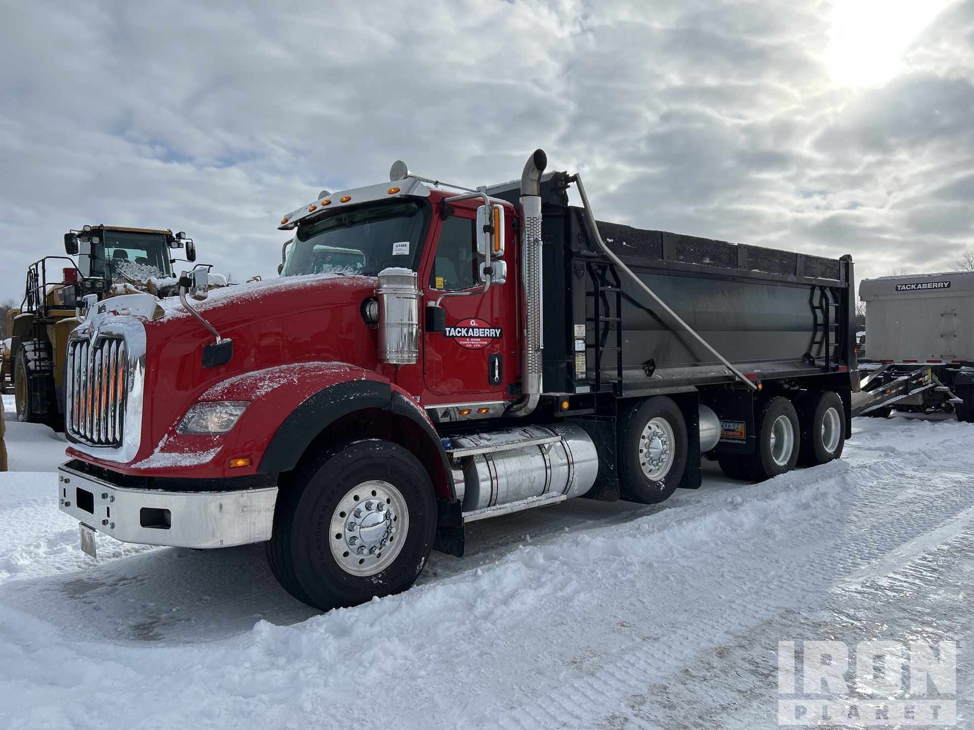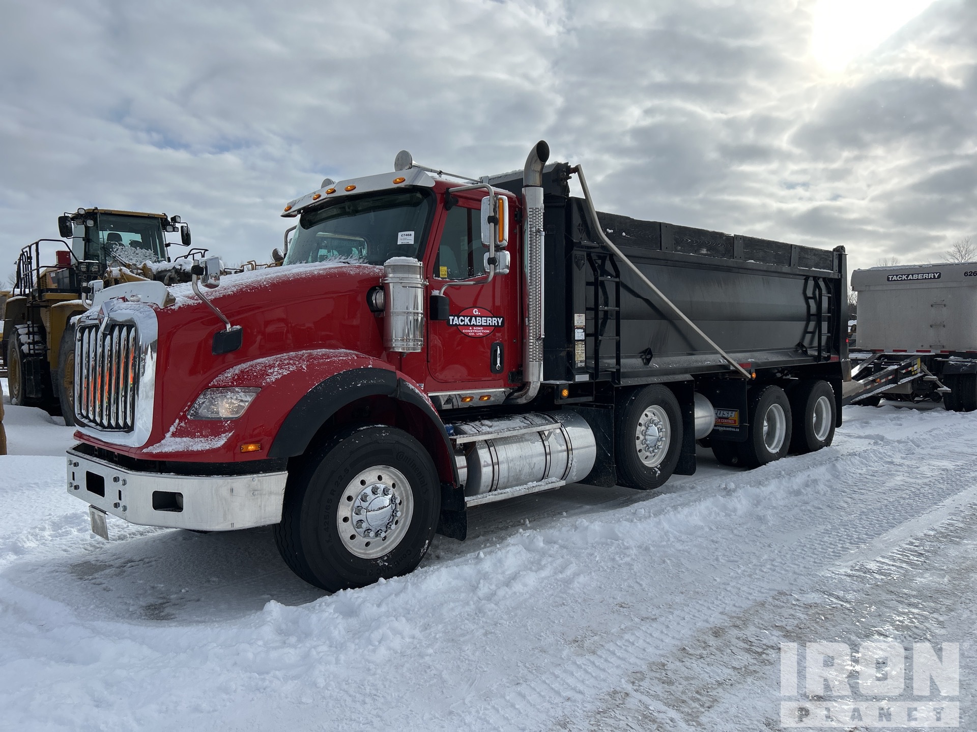 Cummins ISX15 6 Cylinder Diesel Engine, 2016 US EPA Label, Requires Diesel Exhaust Fluid, 13176 Engine hrs, Engine Brake, Eaton Fuller 18-Speed Manual Transmission, Triple Differential Locks, 20000 lb Front Axle, 46000 lb Rears, 66000 lb GVWR, Air Ride Cab, Aluminum Wheels, 425/65R22.5 Front Tires, 11R22.5 Rear Tires, Steerable Air Lift Pusher Axle, Dual Steering Boxes, Double Frame, Hendrickson Air Ride Suspension, 258 in Wheelbase, PTO, BEAU-ROC 20 ft 6 in Long x 0 ft 48 in High Steel Body, Air Powered Roll Tarp, Rear Hydraulics, Pintle Hitch