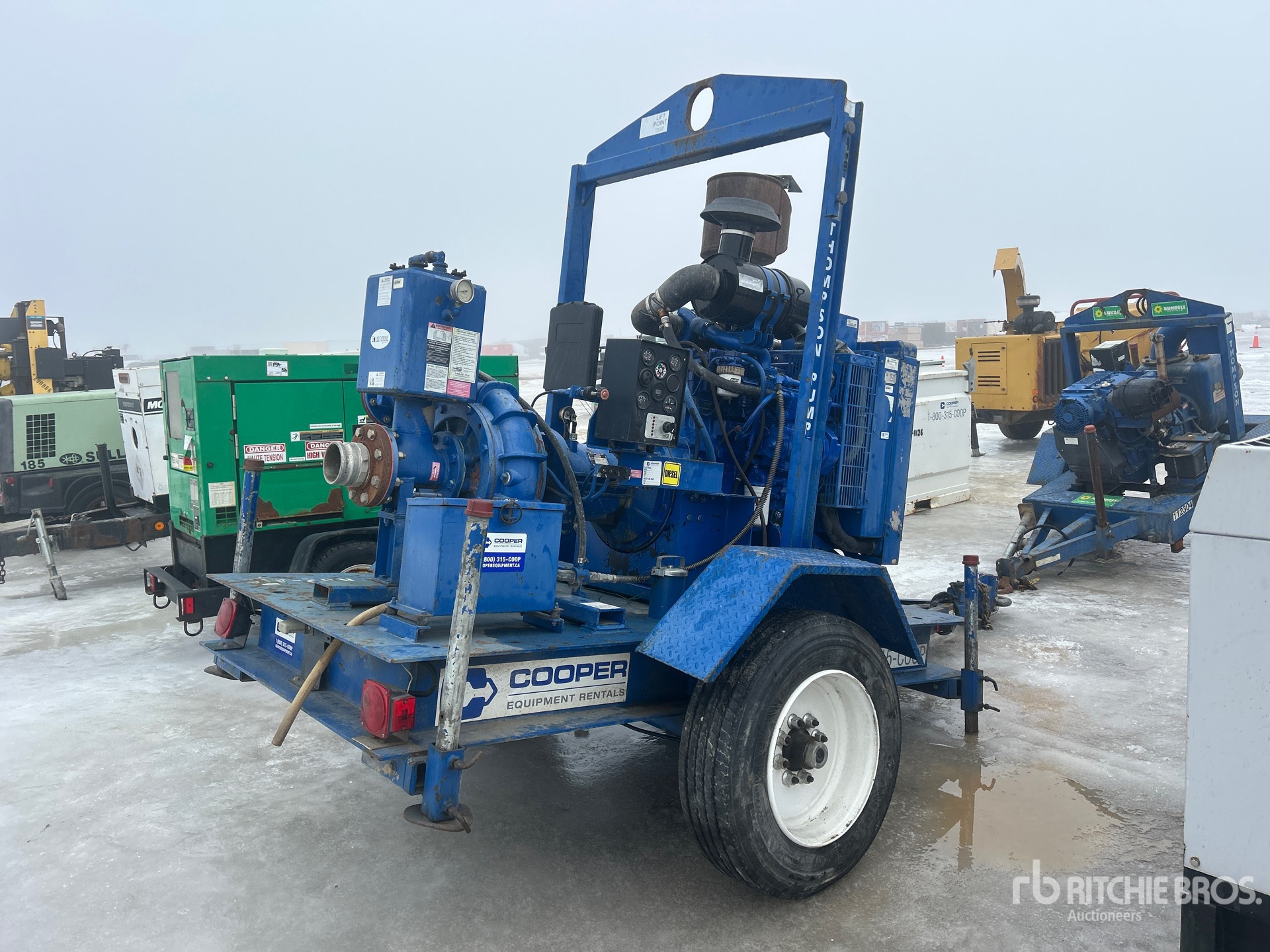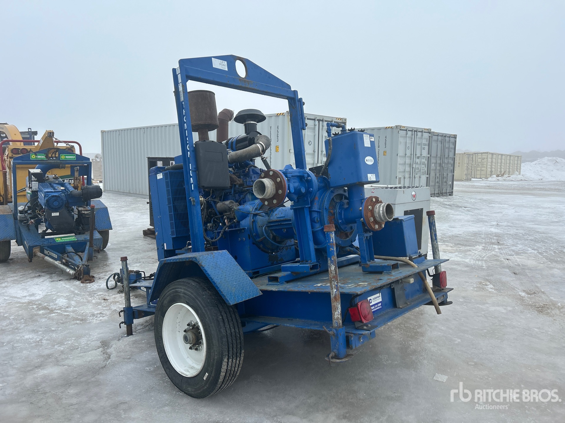 4 in Intake, 4 in Discharge, Centrifugal Trash Pump, 2005 US EPA Label, John Deere 4 Cylinder 4.5 L Diesel Engine, Lunette Ring Carrier Trailer