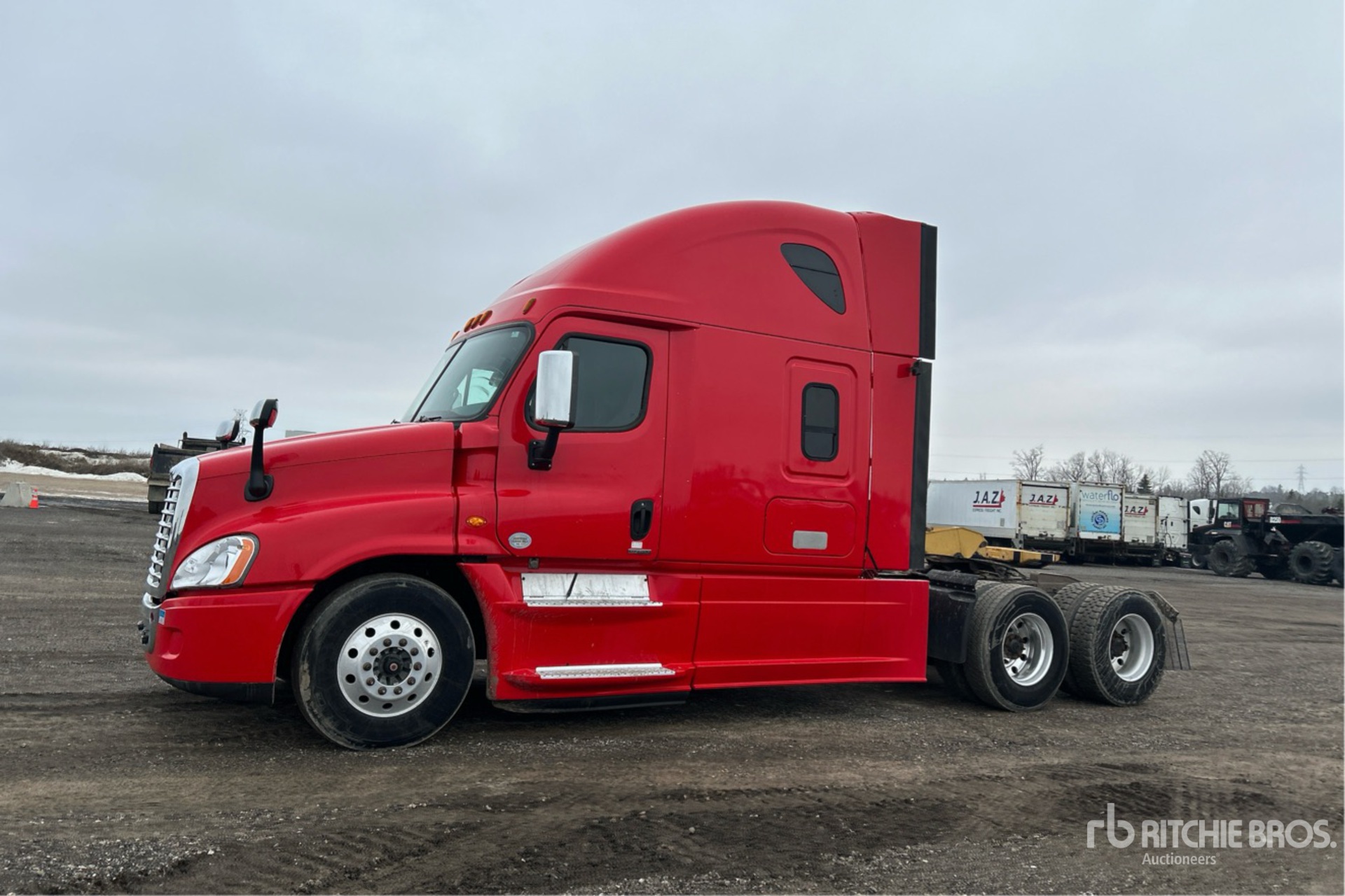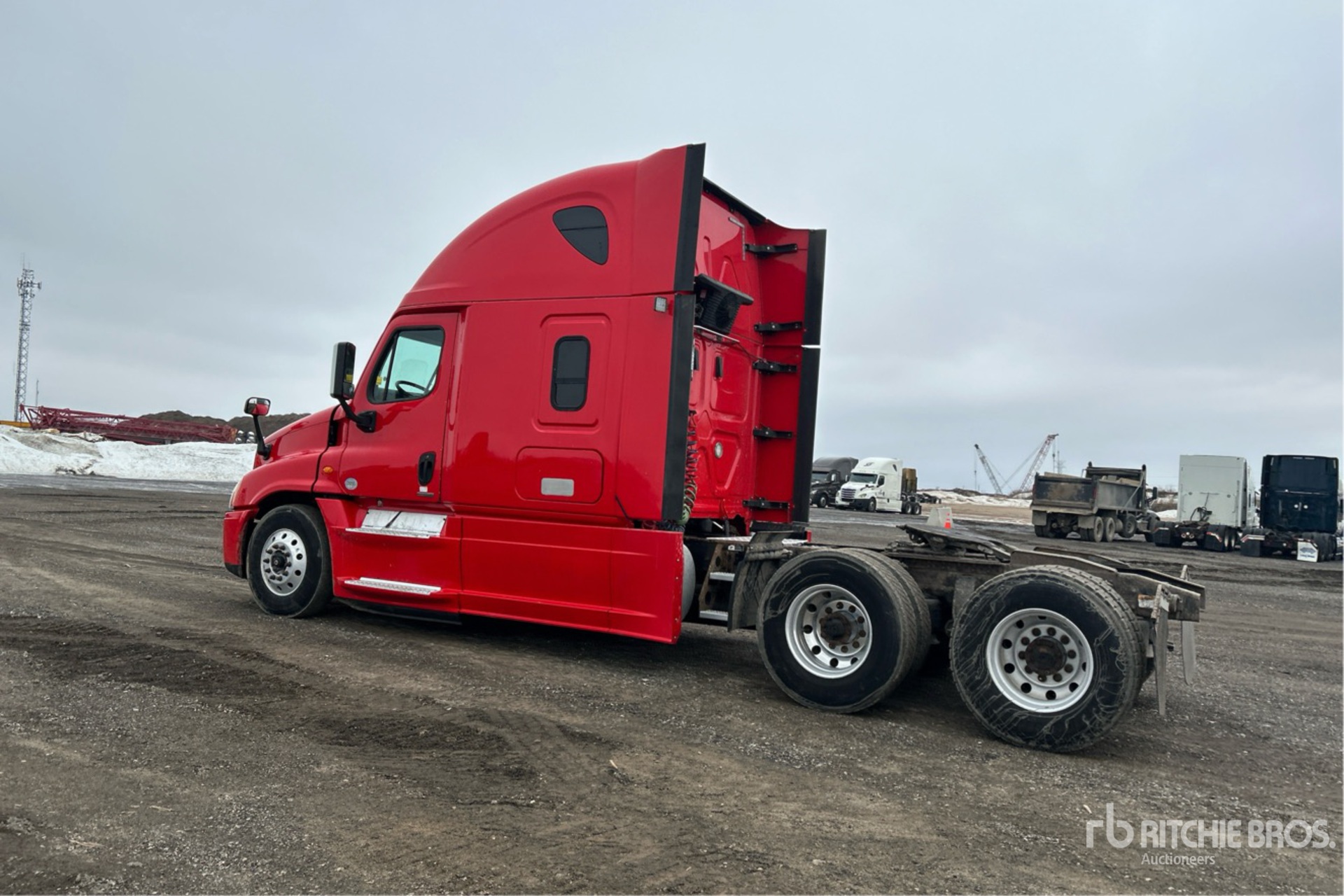 Detroit DD15 505 hp Engine, 2017 US EPA Label, 18585 Engine hrs, 13220 lb Front Axle, 40000 lb Rears, 53220 lb GVWR, Engine Brake, Differential Lock, 70 in High Rise Sleeper Cab, Bunk Beds, 230 in Wheelbase, Air Suspension, Aluminum Wheels, 11R22.5, Air Sliding 5th Wheel, Dual Fuel Tanks