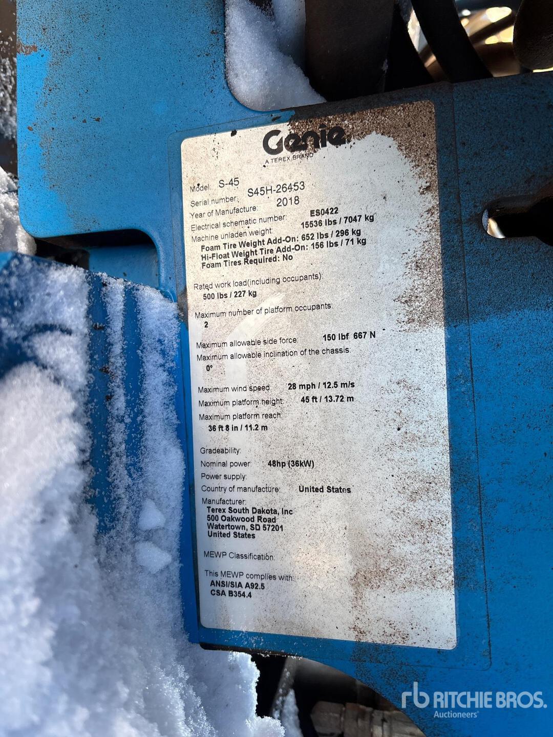 45 ft Max Platform Height, 500 lb Max Weight Capacity, Jib, Power to Platform, Onboard Generator, 2018 US EPA Label, Deutz D2.9L4 4 Cylinder 49 hp 2.9 L Diesel Engine, 12-16.5 Tires, Equipment-from-Herc-Rentals