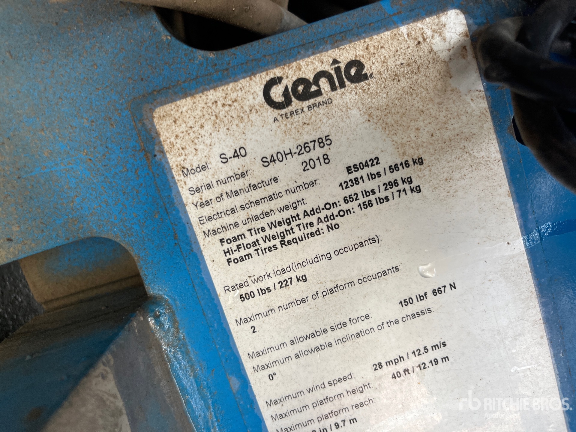 40 ft Max Platform Height, 500 lb Max Weight Capacity, Power to Platform, 2018 US EPA Label, Deutz D 2.9 L4 4 Cylinder 49 hp 2.9 L Diesel Engine, 12-16.5 Tires