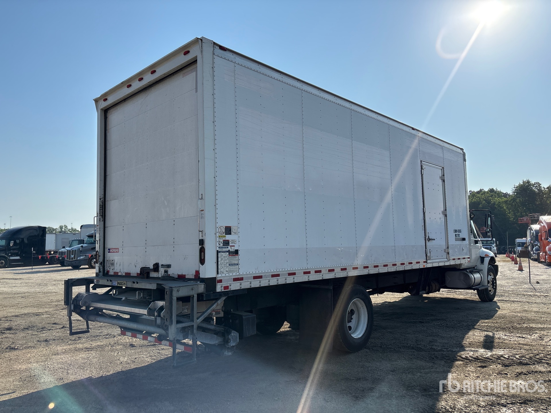 Located in Lane 3 Spot 19, Cummins B6.7 240 6 Cylinder 6.7 L Diesel 240 hp Engine, 2017 US EPA Label, Requires Diesel Exhaust Fluid, 7692 Engine hrs, Automatic Transmission, 10000 lb Front Axle, 19000 lb Rears, 25999 lb GVWR, 295/75R22.5, Air Ride Suspension, 272 in Wheelbase, MORGAN 26 ft x 102 in Wide x 103 in High Body, Curbside Door, Walk-Up Ramp, Liftgate
