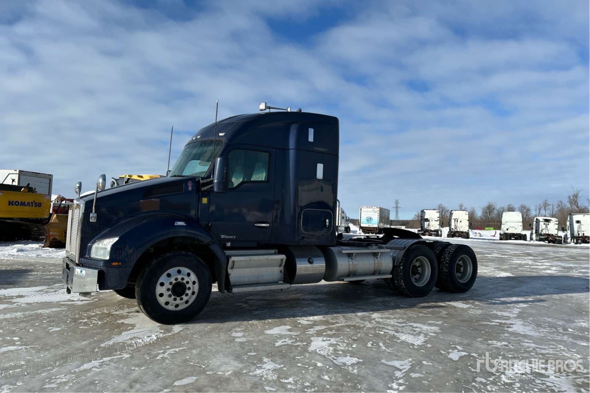 Paccar MX-13 510 hp Engine, 2017 US EPA Label, 14704 Engine hrs, Eaton Fuller RTLO18918B 18-Speed Manual Transmission, 6623 kg Front Axle, 20866 kg Rears, 27488 kg GVWR, Engine Brake, Differential Lock, 40 in High Rise Sleeper Cab, 222 in Wheelbase, 8-Bag Air Suspension, Aluminum Wheels, 11R22.5, Air Sliding 5th Wheel, Dual Fuel Tanks