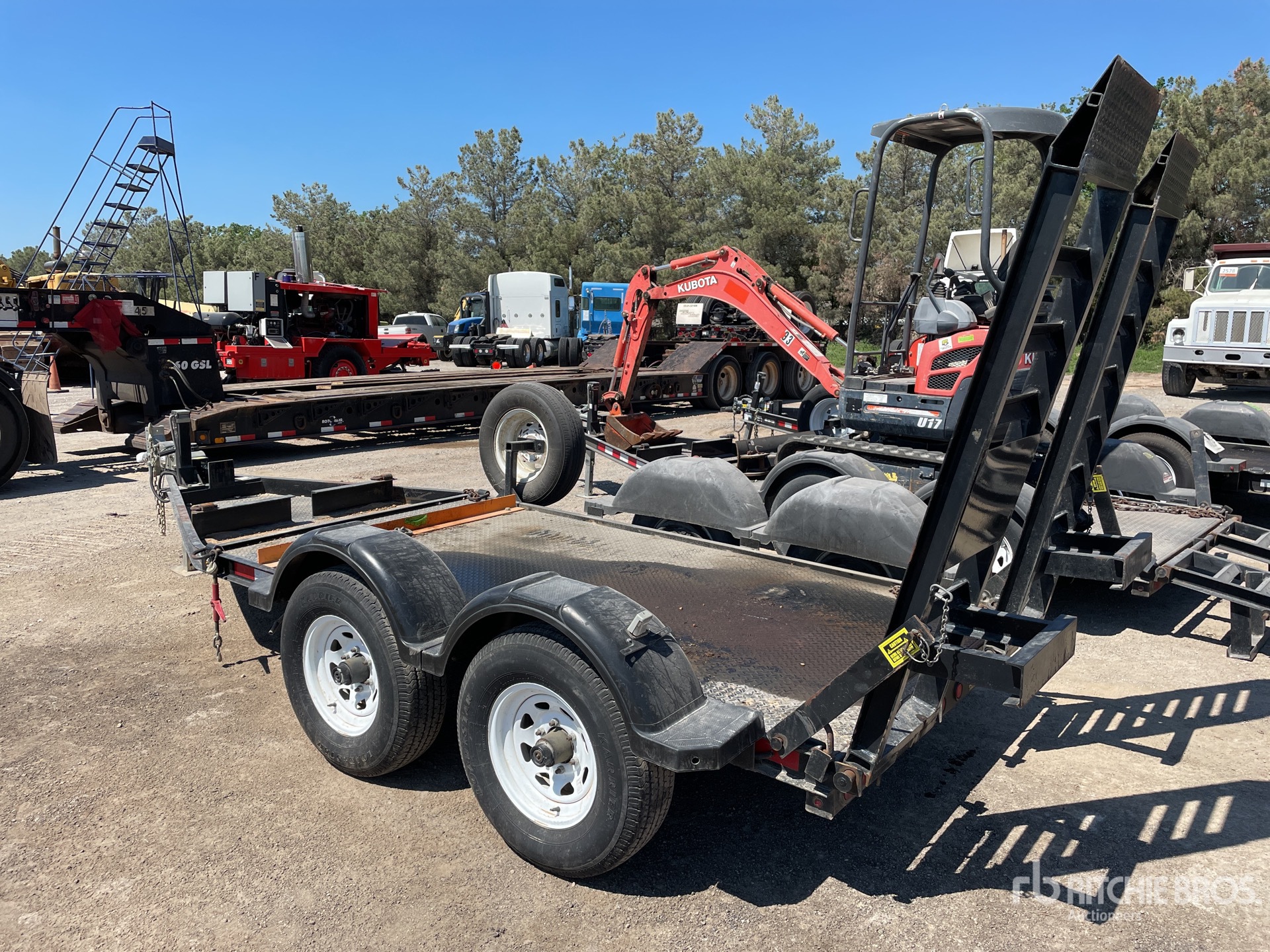 Les mesures sont fournies à titre d'estimation uniquement. Les dimensions réelles sous charge peuvent varier en fonction de la hauteur du camion/de la remorque et de la configuration/position de la machine chargée. Il incombe à l'acheteur de mesurer toutes les charges avant de quitter notre site de vente pour s'assurer que la charge peut être transportée en toute sécurité. Toutes les mesures doivent être vérifiées par l'acheteur. Ne vous fiez pas à ces mesures pour le transport.