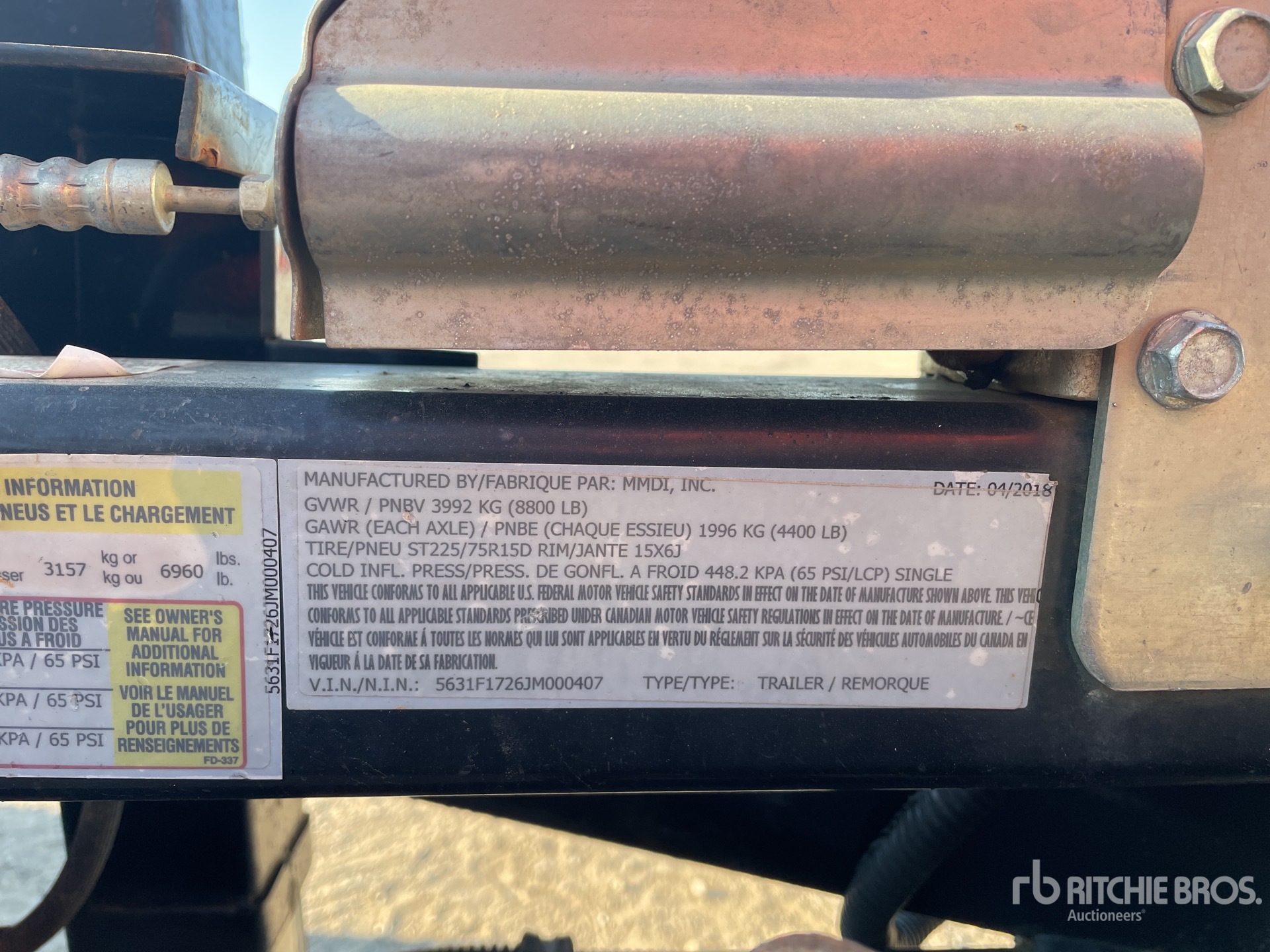Les informations détaillées de l'équipement ont une portée limitée. Ritchie Bros. Auctioneers n'a inspecté aucun aspect ou composant de l'équipement autre que ceux expressément énoncés dans le présent document. Sauf indication expresse, nous ne faisons aucune déclaration ou garantie, expresse ou implicite, concernant l'équipement et/ou ses composants, y compris, sans s'y limiter, toute déclaration ou garantie concernant le fonctionnement, la conformité à toute norme ou exigence de sécurité de toute autorité ou tout organisme de réglementation applicable, l'adéquation à un usage particulier ou la qualité marchande. Nous vous conseillons fortement d'effectuer vous-même une inspection détaillée de l'équipement avant d'enchérir.