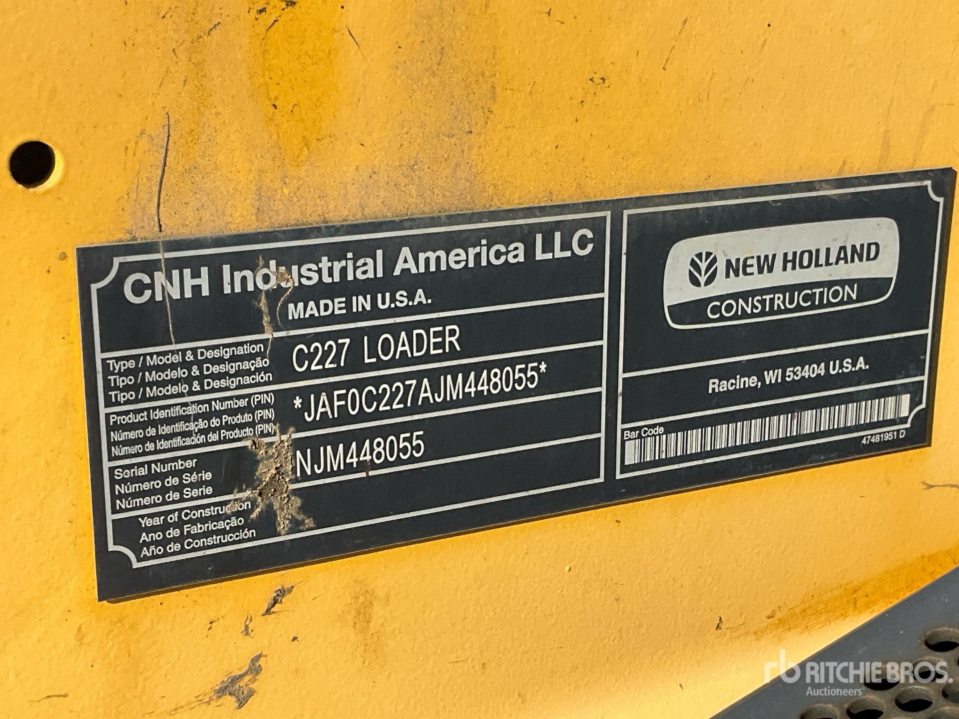 JAF0C227AJM448055, Full PIN provided by inspector, SN was properly listed as appears on label