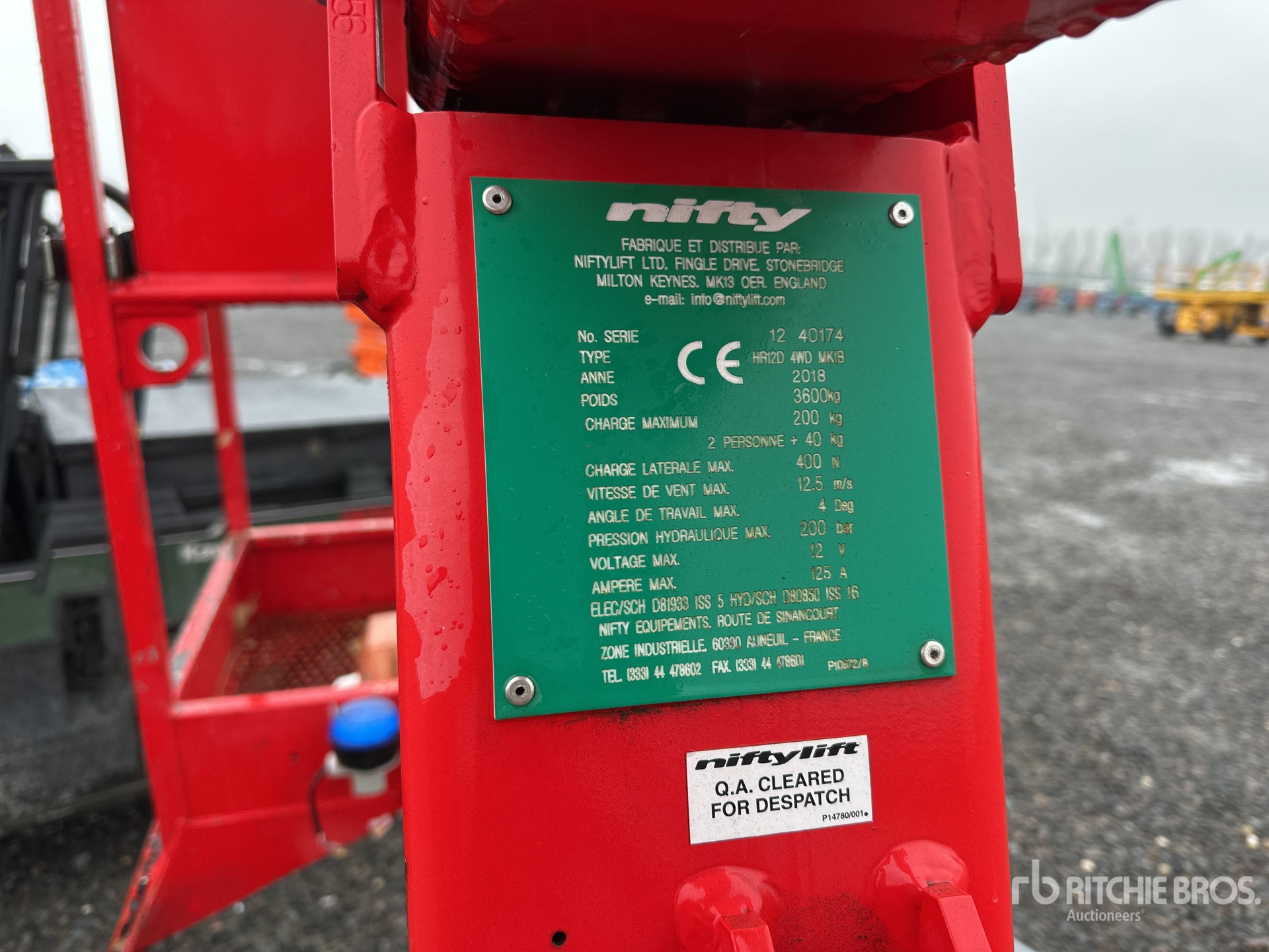 Les informations détaillées de l'équipement ont une portée limitée. Ritchie Bros. Auctioneers n'a inspecté aucun aspect ou composant de l'équipement autre que ceux expressément énoncés dans le présent document. Sauf indication expresse, nous ne faisons aucune déclaration ou garantie, expresse ou implicite, concernant l'équipement et/ou ses composants, y compris, sans s'y limiter, toute déclaration ou garantie concernant le fonctionnement, la conformité à toute norme ou exigence de sécurité de toute autorité ou tout organisme de réglementation applicable, l'adéquation à un usage particulier ou la qualité marchande. Nous vous conseillons fortement d'effectuer vous-même une inspection détaillée de l'équipement avant d'enchérir.