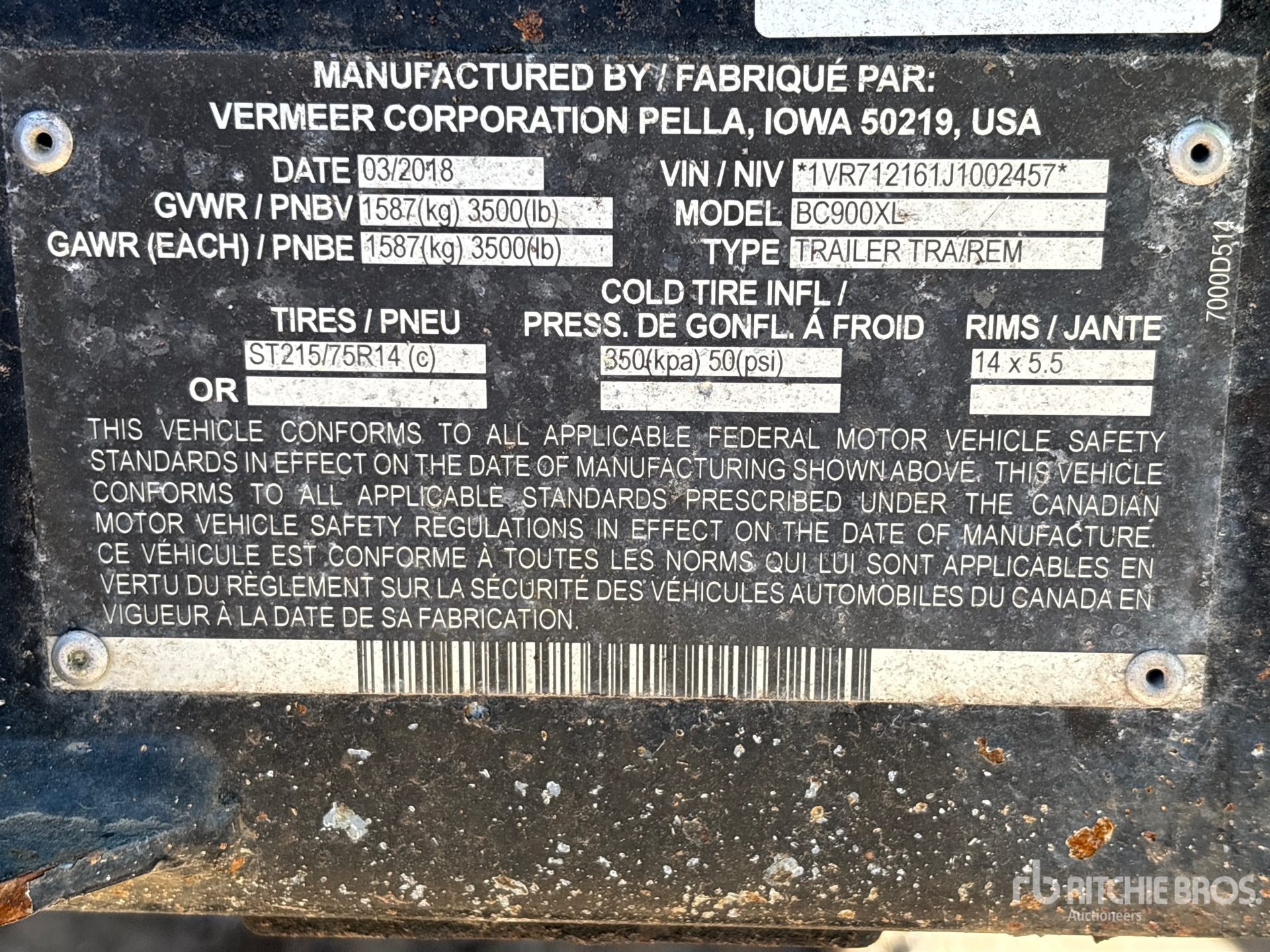 Un employé qualifié de Ritchie Bros. a recueilli des informations détaillées sur l'équipement et a effectué des tests fonctionnels sur les composants majeurs de cet actif. Vous, ou un mandataire, pouvez également inspecter tous les articles disponibles sur site avant de faire une offre le jour de la vente aux enchères.